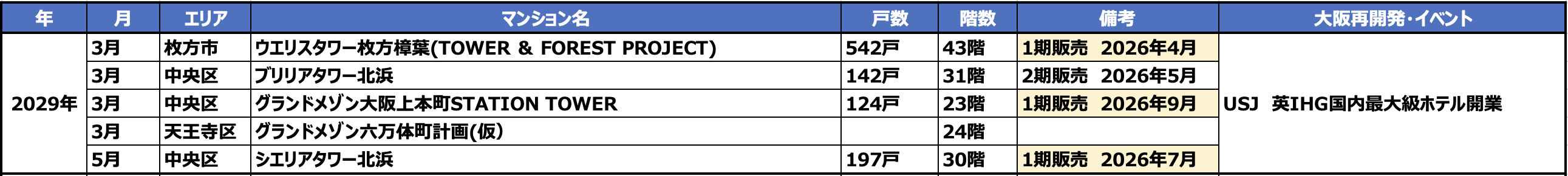2026年以降も大阪では注目の新築タワマンが多く販売されますが、その多くが2028年・2029年に完成するマンションとなります。