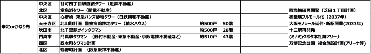 ※表に漏れている大阪のタワマンがあれば個別にご連絡いただけますと幸いです