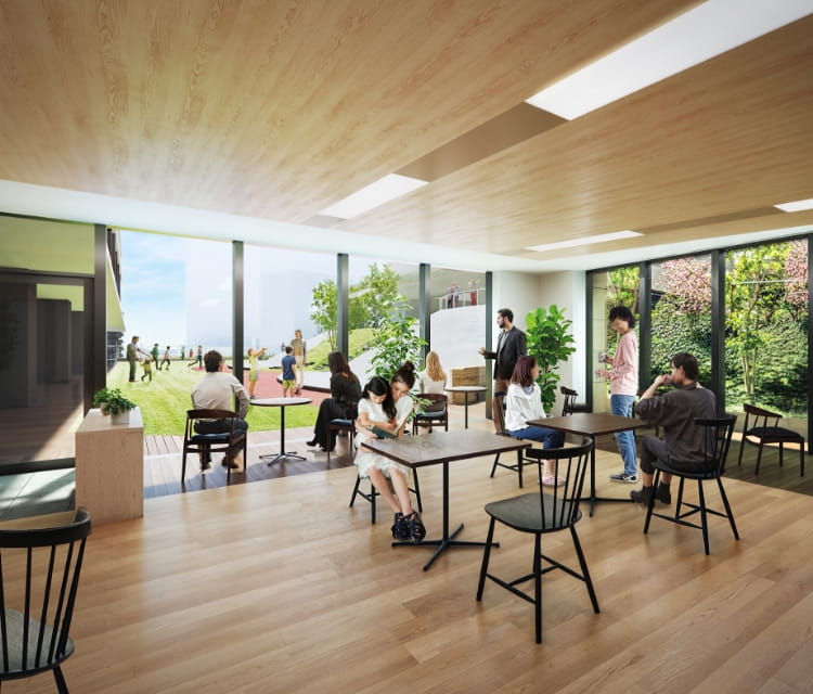 1〜3階には11,000㎡もの商業施設に加え保育施設が入ります。4階は第三者にも開放される公園が設置され、北西角にはオフィスも入ります。公園はすべり台やブランコがあったりなど思った以上に本格的です。