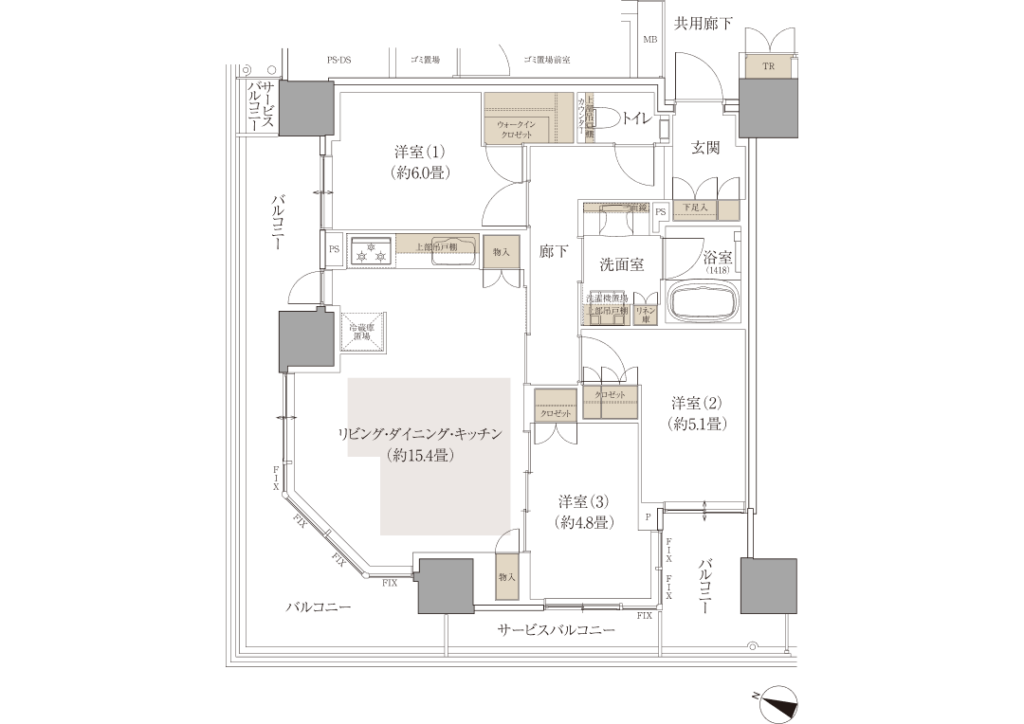 B-75Atype 3LDK+WIC 75.61㎡