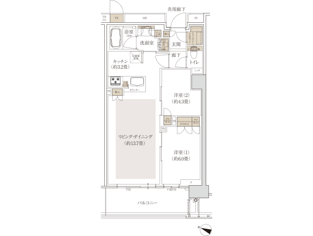 B-55D1type 2LDK+WIC 57.73㎡