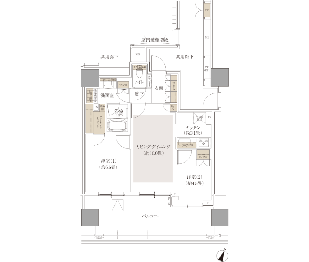 それぞれの形ですが、クラッシィタワーはL字型、ブリリアタワーが四角形となっております。