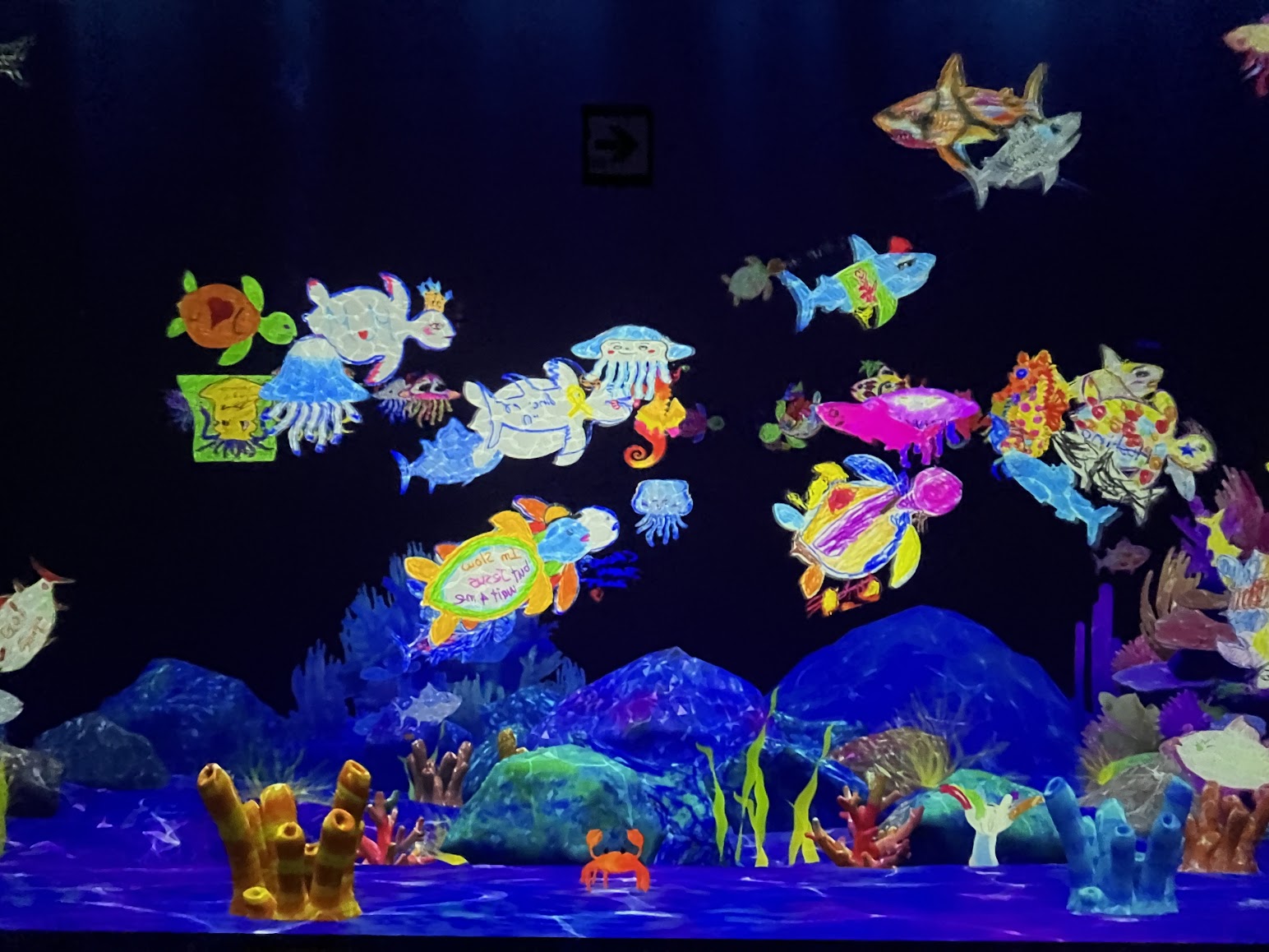 自分が描いた魚が海に泳ぎ出し、探すのも面白い