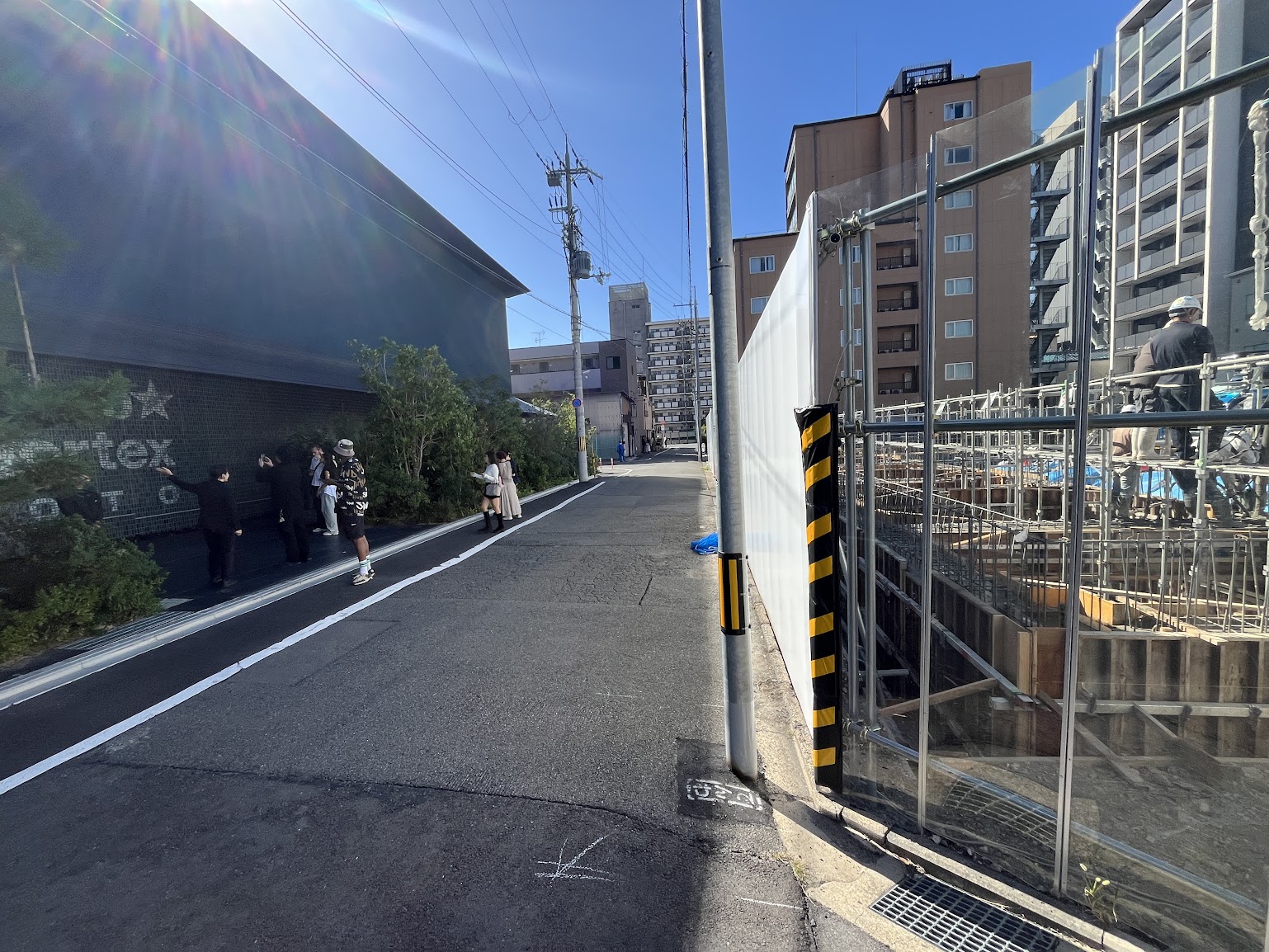 チームラボの北側にはバリケード。 国際的なアート事業「Superblue」が手掛ける体験型アート施設『Superblue Kyoto』が建設中です。2026年冬開業予定。街がアートで埋め尽くされていきます