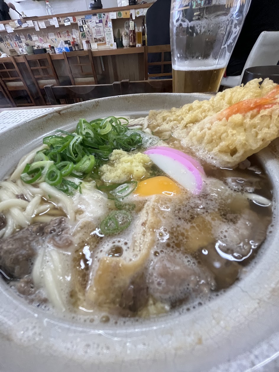 カウンターで飲みすぎる客をたしなめる姉さん、目の前の昭和の原風景のような景色を眺めながら食べる「なべ焼きうどん全部入り(すじ)」。新旧入り乱れるここ東九条、海外のお客様が増えてきたとの事でした