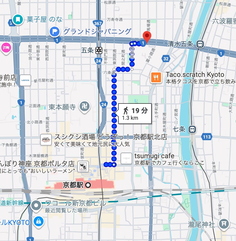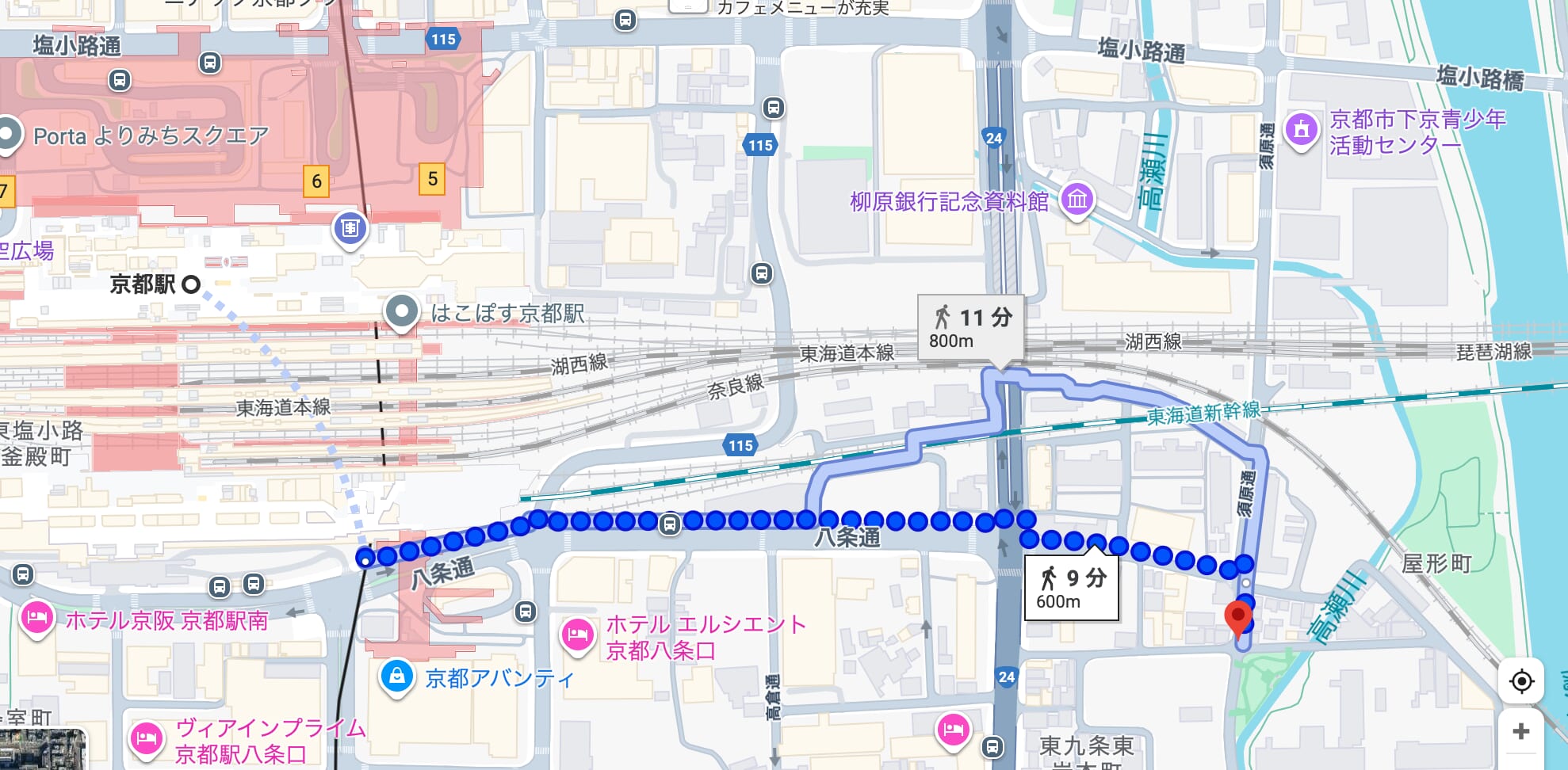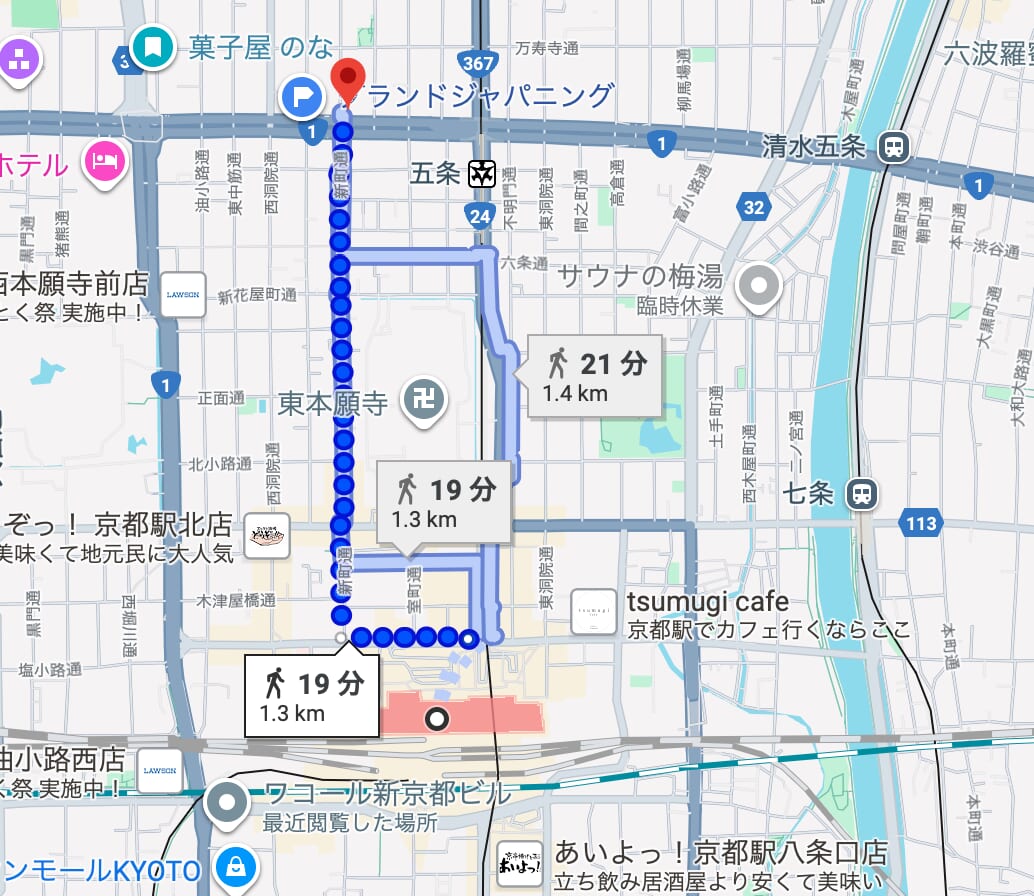 調査地点の「東塩小路町」は京都駅の北側、訪日旅行者にとってはまさに「京都の顔」というエリアです