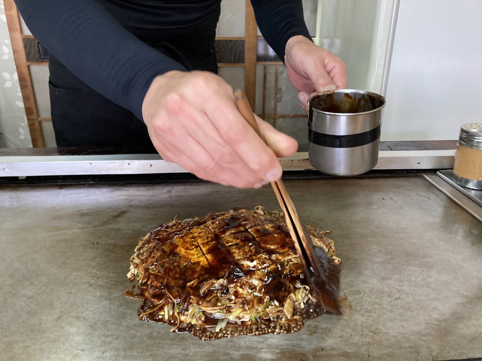 カウンターで飲みすぎる客をたしなめる姉さん、目の前の昭和の原風景のような景色を眺めながら食べる「なべ焼きうどん全部入り(すじ)」。新旧入り乱れるここ東九条、海外のお客様が増えてきたとの事でした