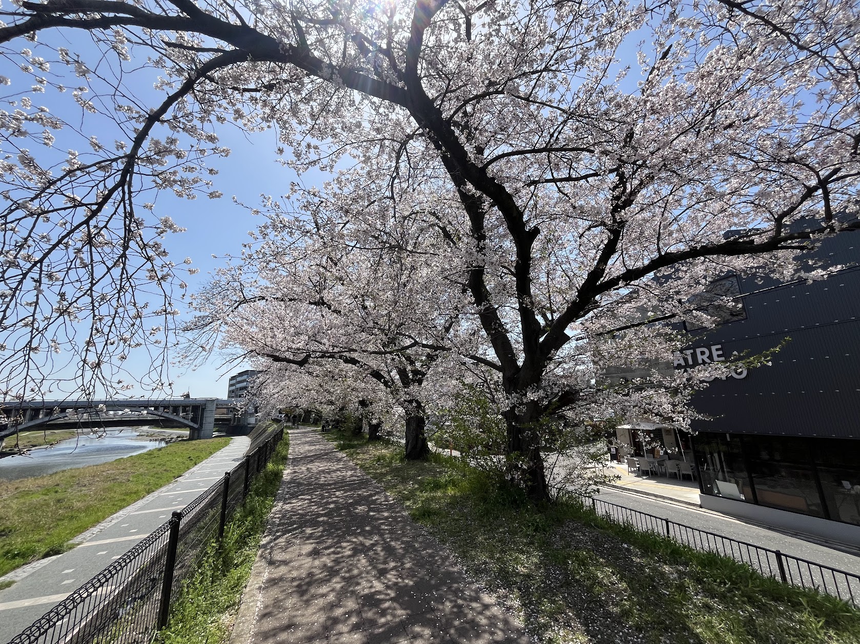 2025年4月9日の東九条、桜が咲き誇る鴨川沿い