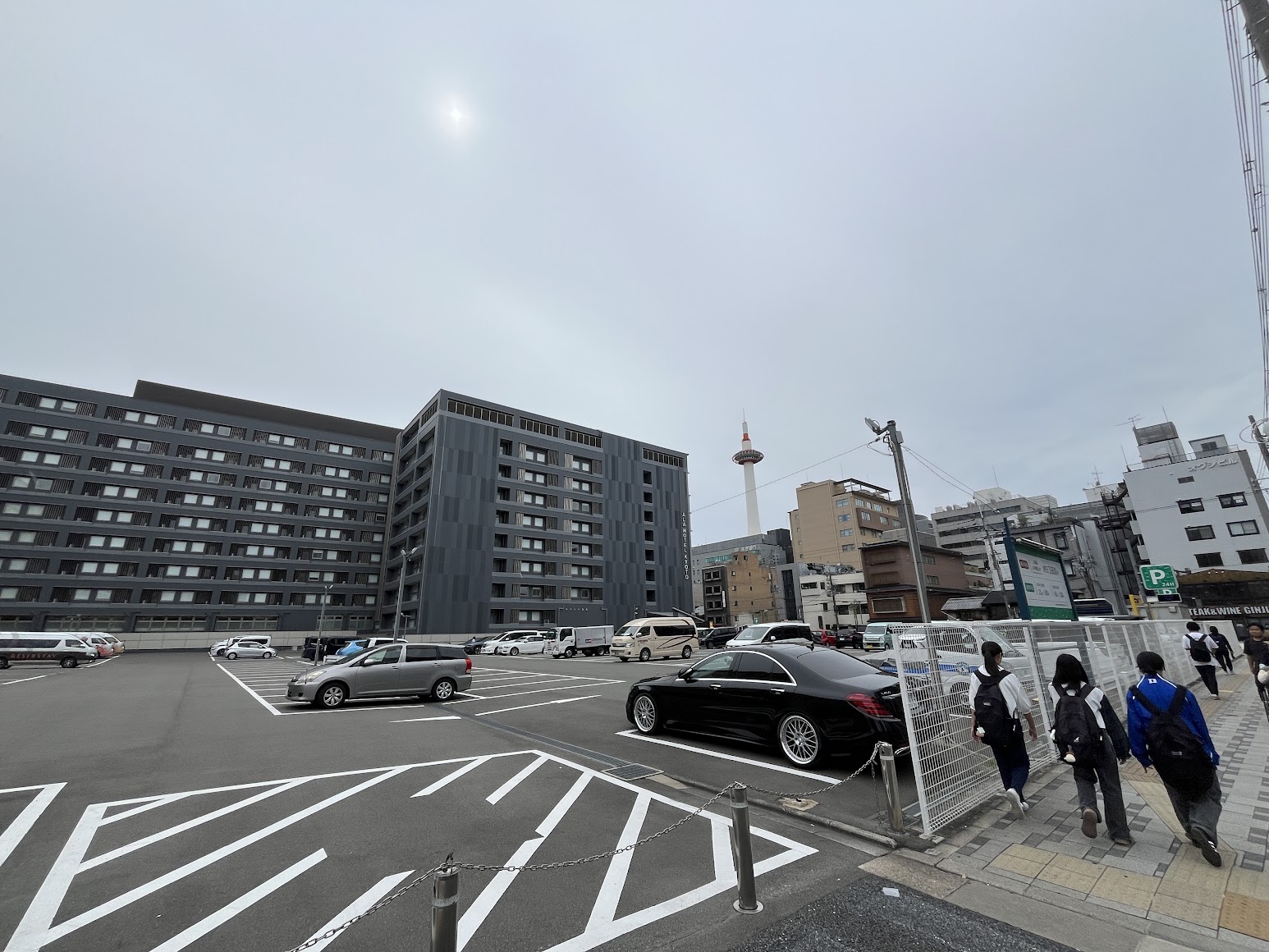 まだパーキング以外に広大な敷地が残されています。北側にはイオン京都、そして京都タワーが見えます