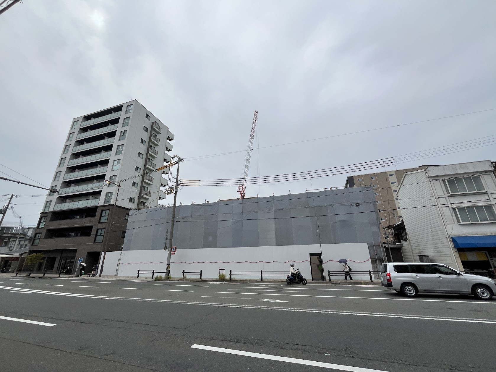 河原町七条下る、このエリアで不足しているスーパーが1階に入る賃貸マンションが建設中です