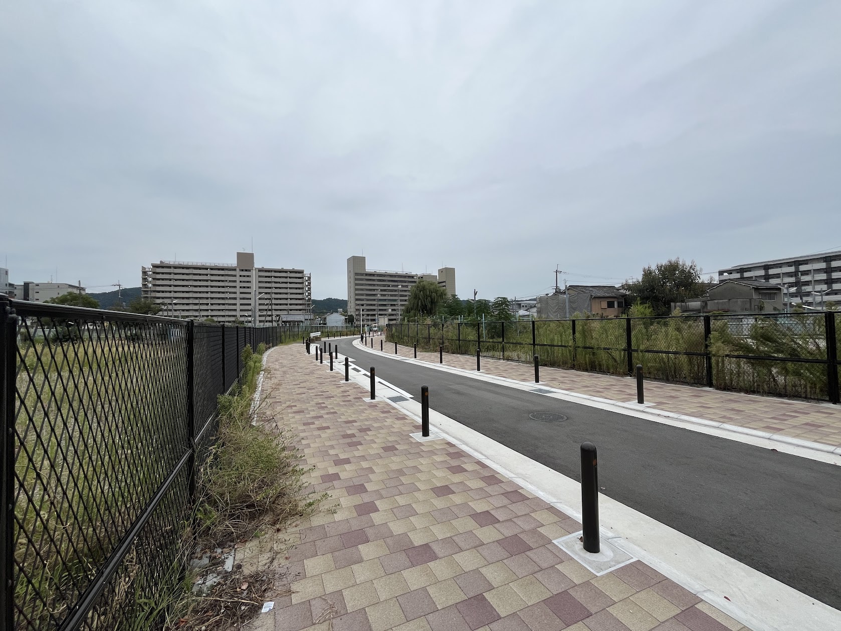 河原町通から崇仁エリアを突き抜けて道路が整備されました。奥に見えるのはいずれ解体される市営住宅です