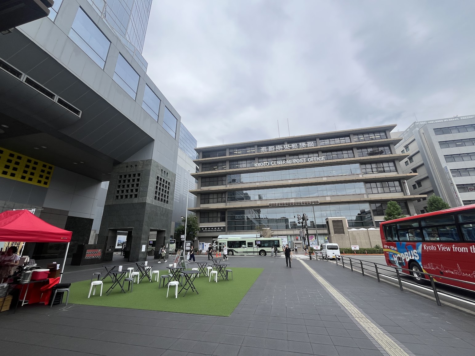 京都駅北側前(西)には建て替えられホテル併設の複合商業ビルとなる「京都中央郵便局」