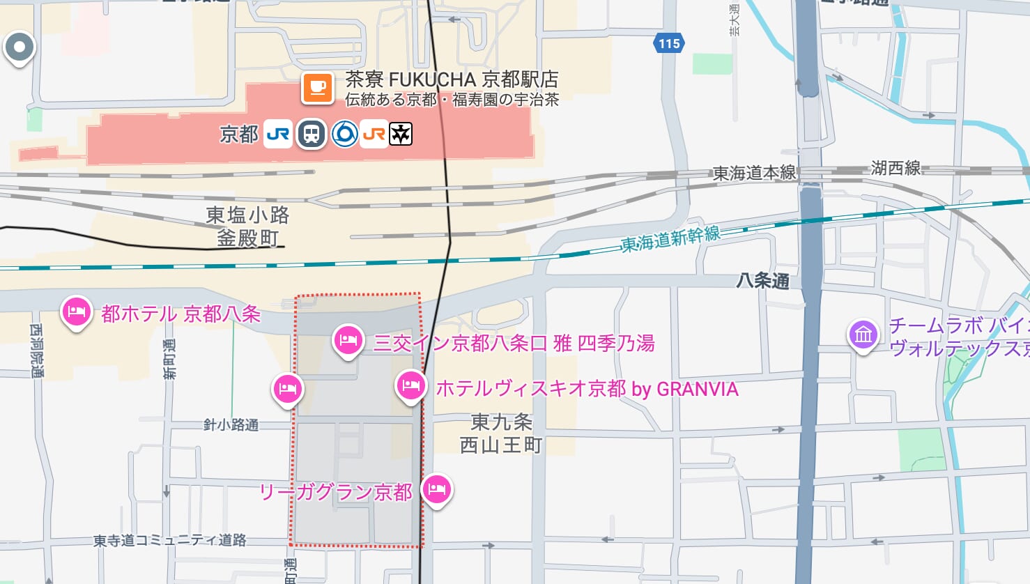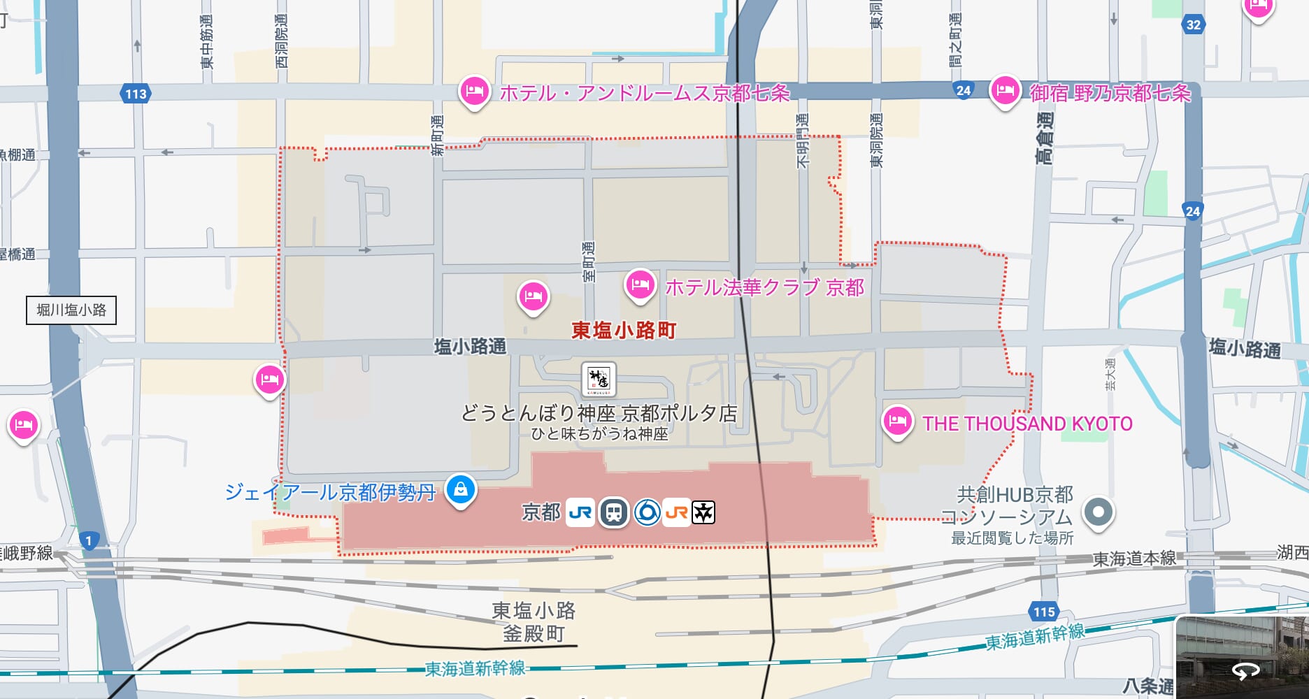 調査地点の「東塩小路町」は京都駅の北側、訪日旅行者にとってはまさに「京都の顔」というエリアです