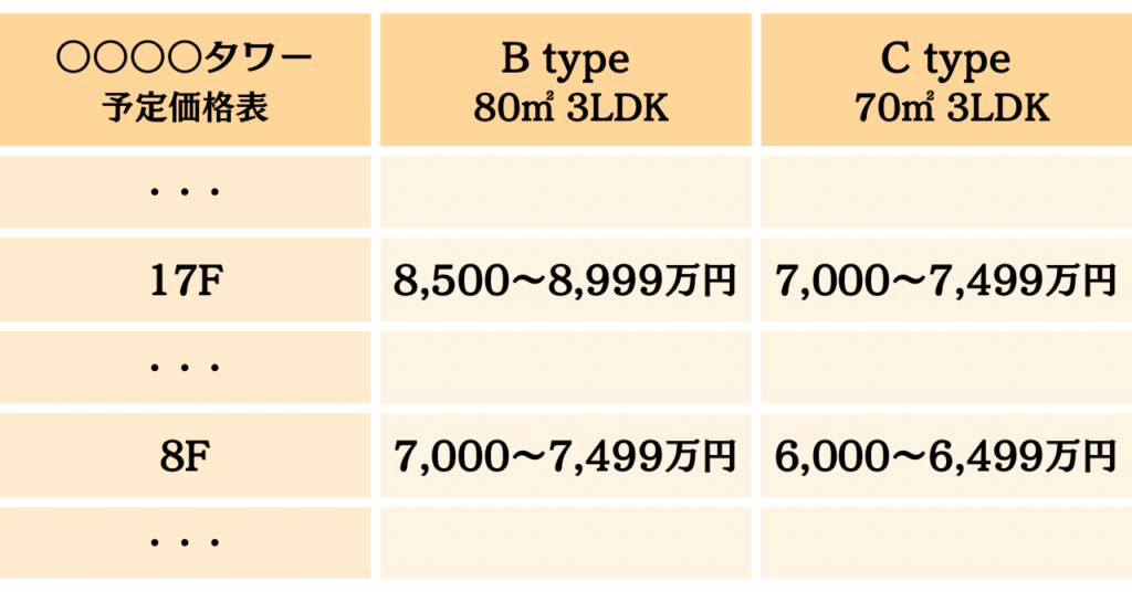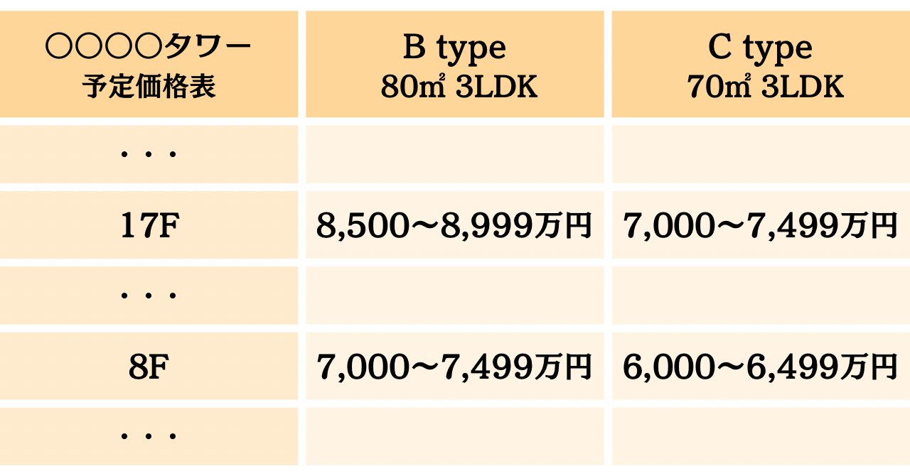 7,000〜7,499万円などと幅を大きくして販売側はまずこれでお客さんの反応をみています