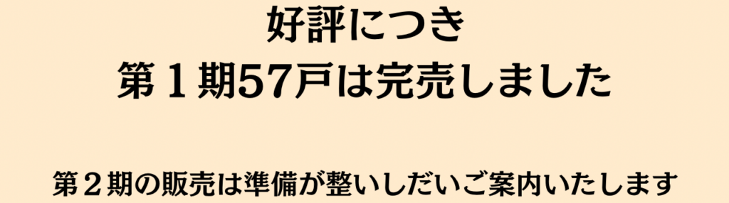 直前のキャンセルがなければ当然「第1期完売」になり人気物件であることをアピールできるのです