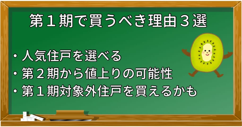 そこで購入する意思を示して資金能力があること、住宅ローンの仮審査をいち早く済ませることで第2期以降の購入希望を聞き入れてもらえる可能性がでてきます