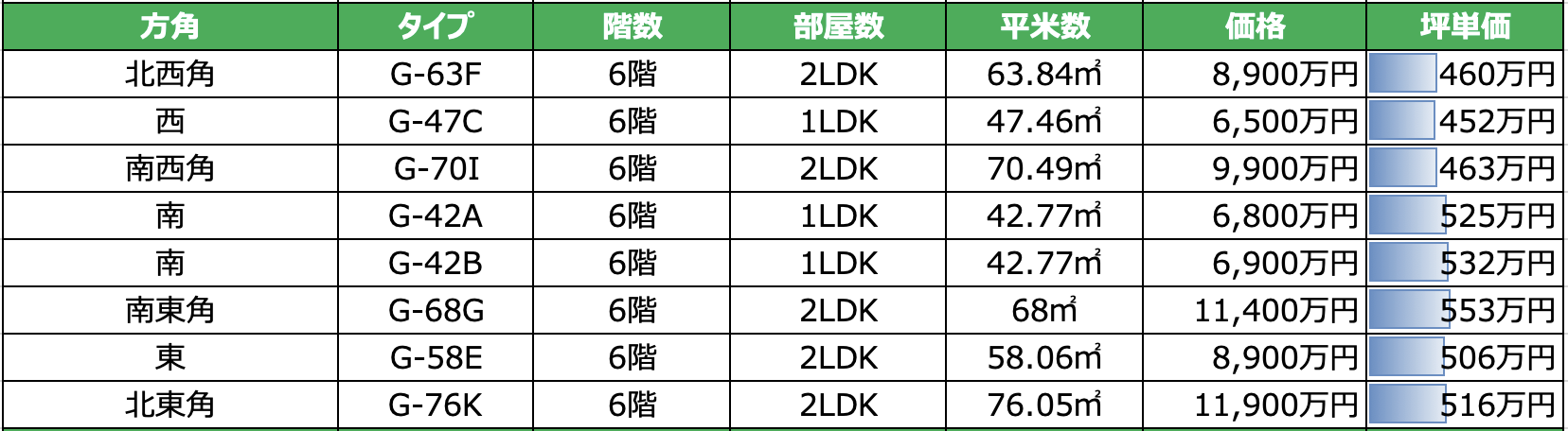 - 最安坪単価:坪452万円(西向き中 6階)