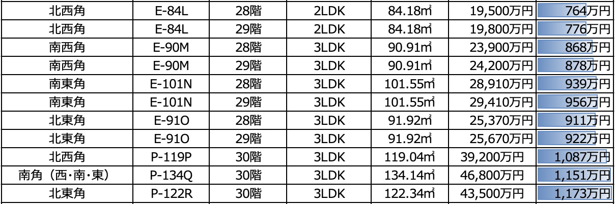 新築タワマンは低層階と高層階の価格差が年々広がっておりますが、全体的には平均坪単価も上がっているため、やはり少しでも早く購入するのが重要です。