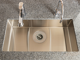 キッチン天板は天然石(御影石っぽい?)、シンクも静音ワイドシンクでかっこいい(このシンク、ディアナコートでよく見るイメージ)です。35戸という規模感ながらディスポーザーもあります。洗面水栓はグローエ、天板も天然石で高級感あります。価格は高そうですが高いなりの仕様を意識している印象を受けました。