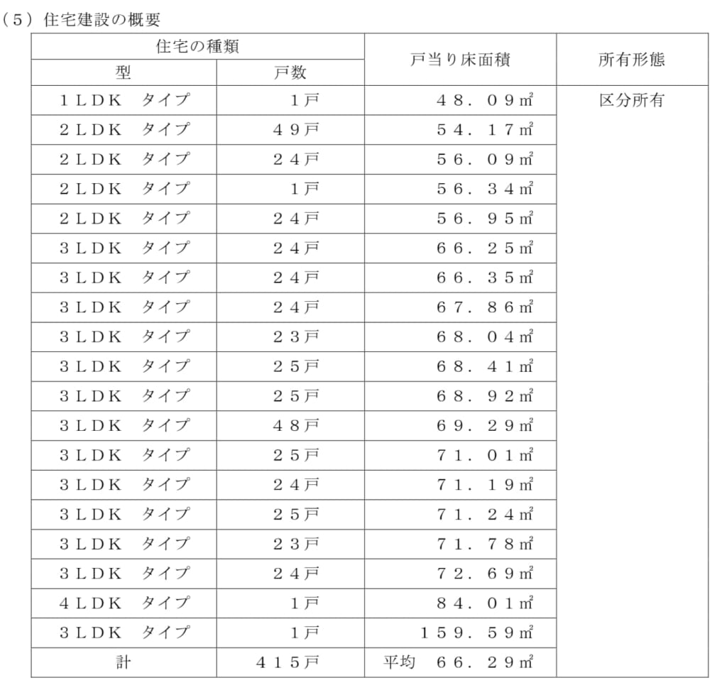 70㎡前後の3LDKが314戸と、全415戸の76%を占めています