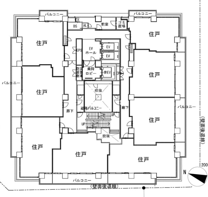エレベーターは同じく3基で南西向きの住戸が多くなります