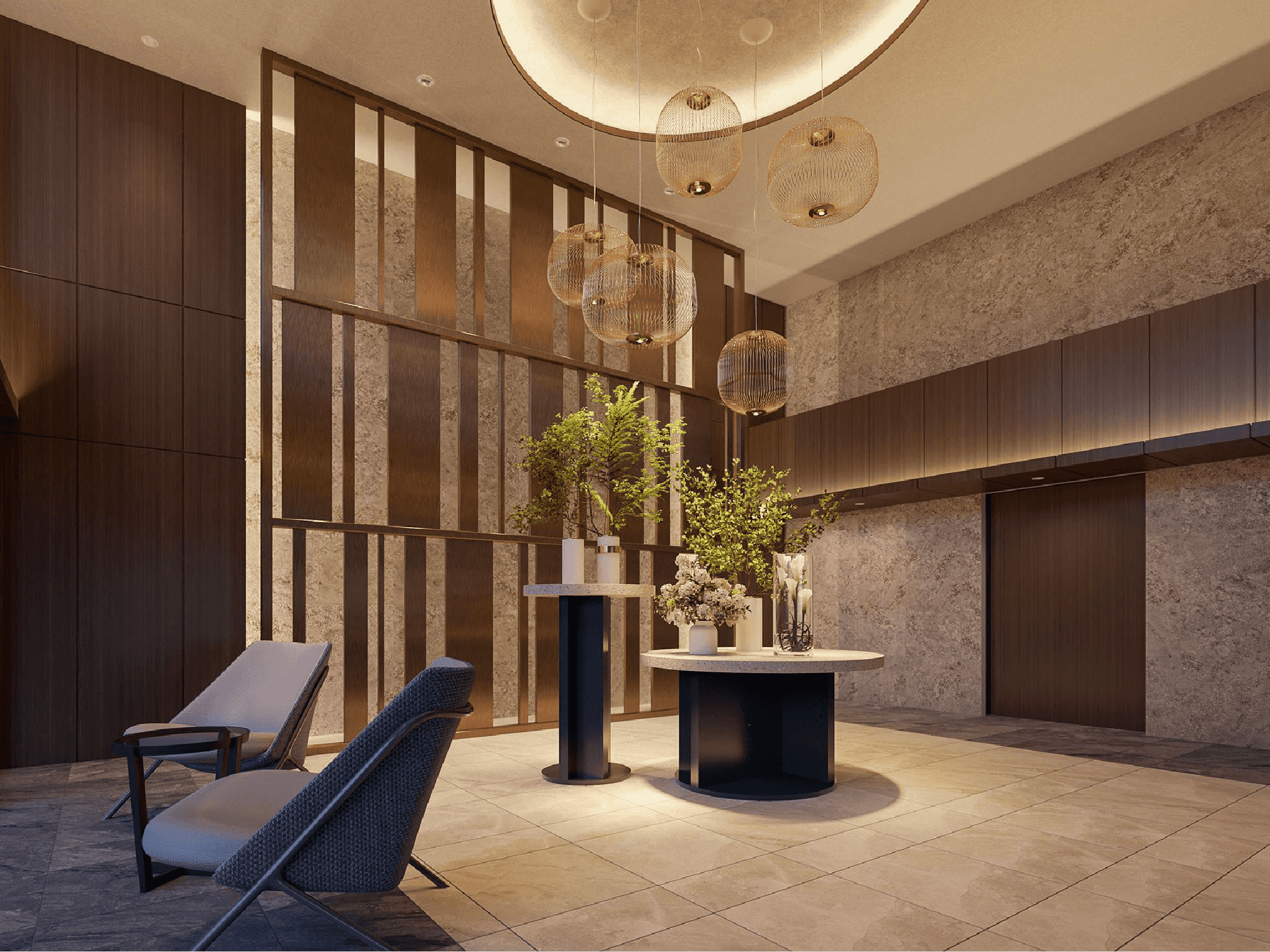 1階エントランスラウンジは2階吹き抜けです。