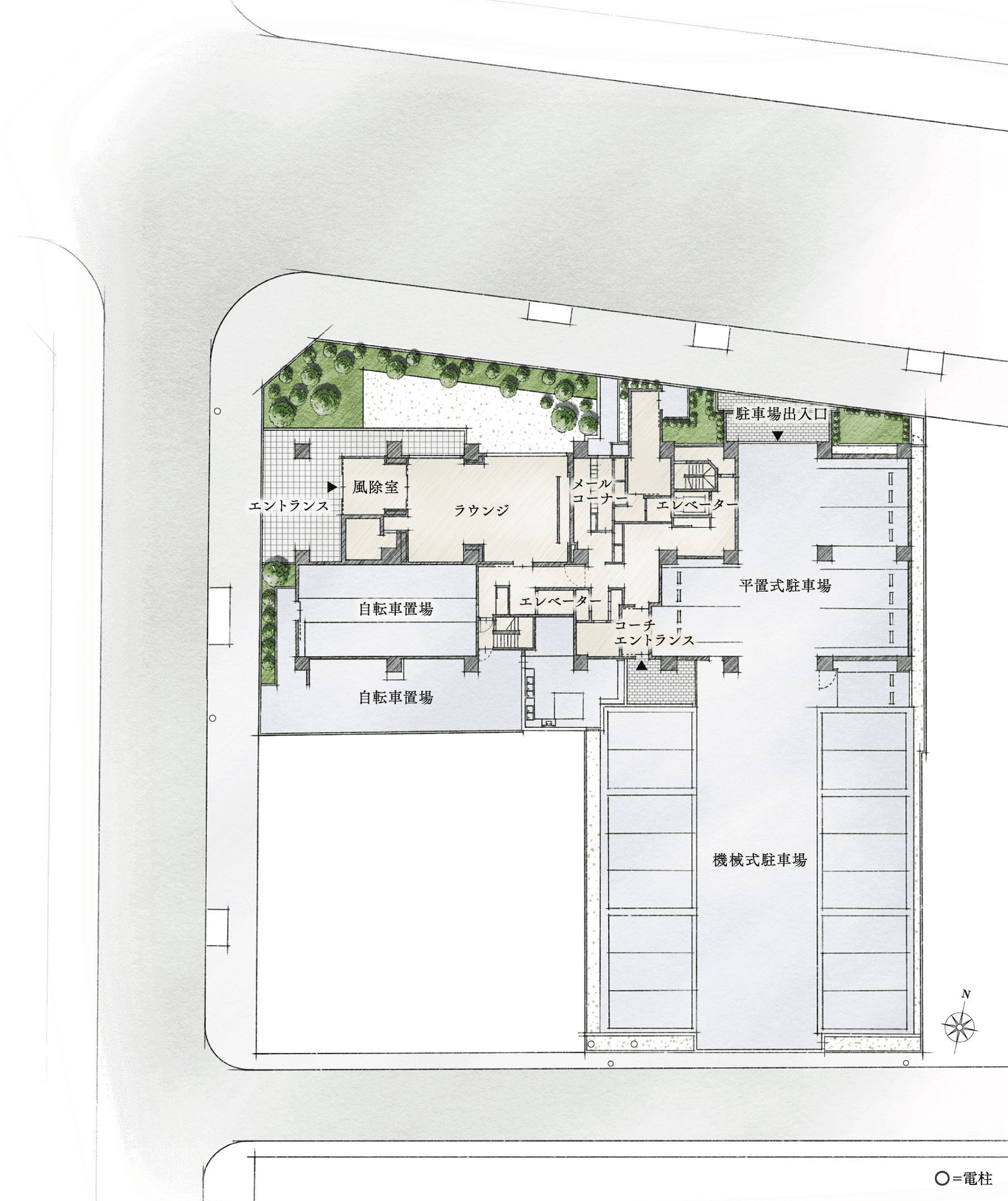 - 駐車場総台数:総戸数 80戸 に対して 敷地内機械式 44台(月額 16,500円~20,000円) 敷地内平面 7台(月額 27,000円~30,000円)