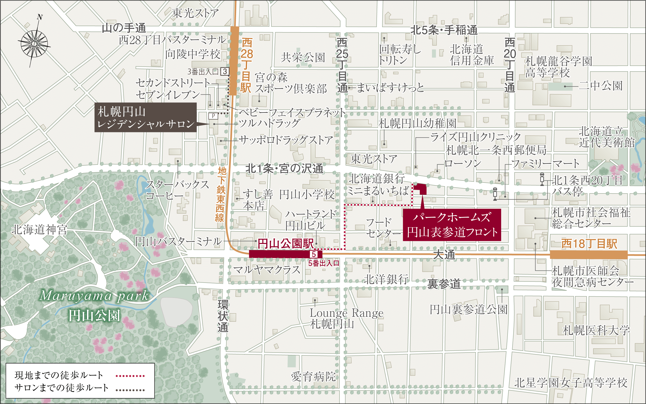 実際のところ、駅距離は円山公園7分・西18丁目8分と少し遠いです。