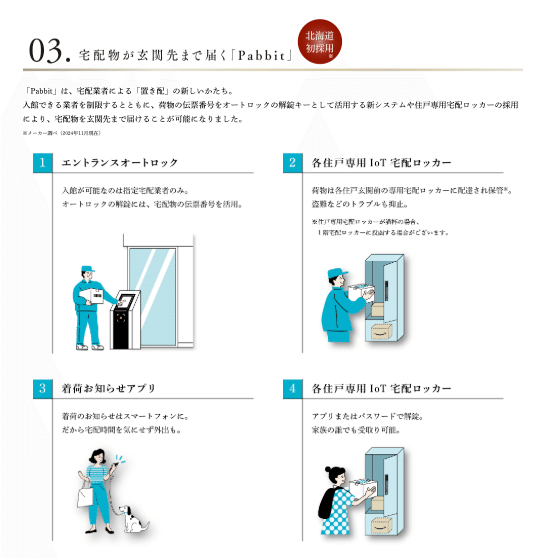また、北海道初採用の置き配サービス「Pabbit」が導入されております。