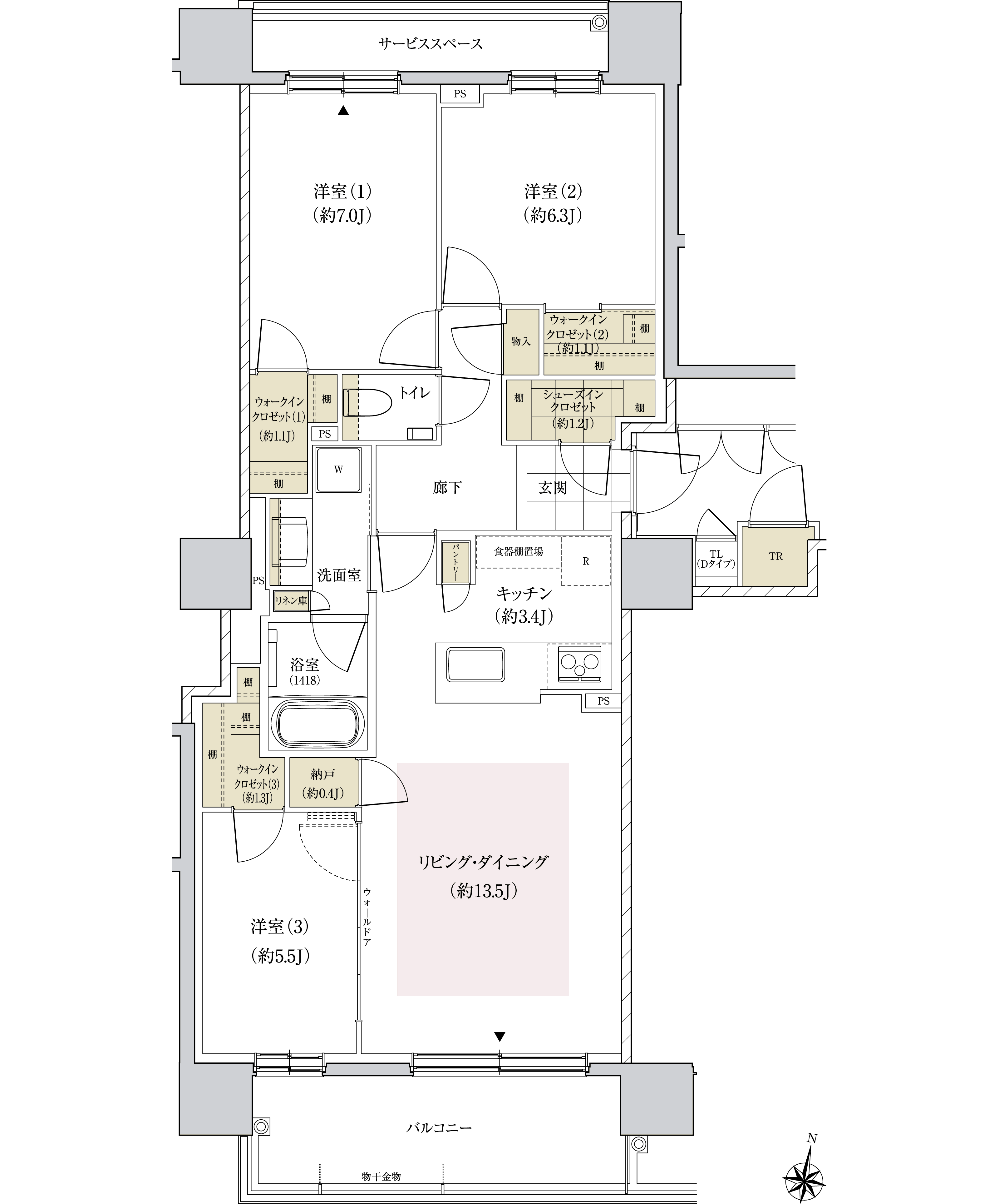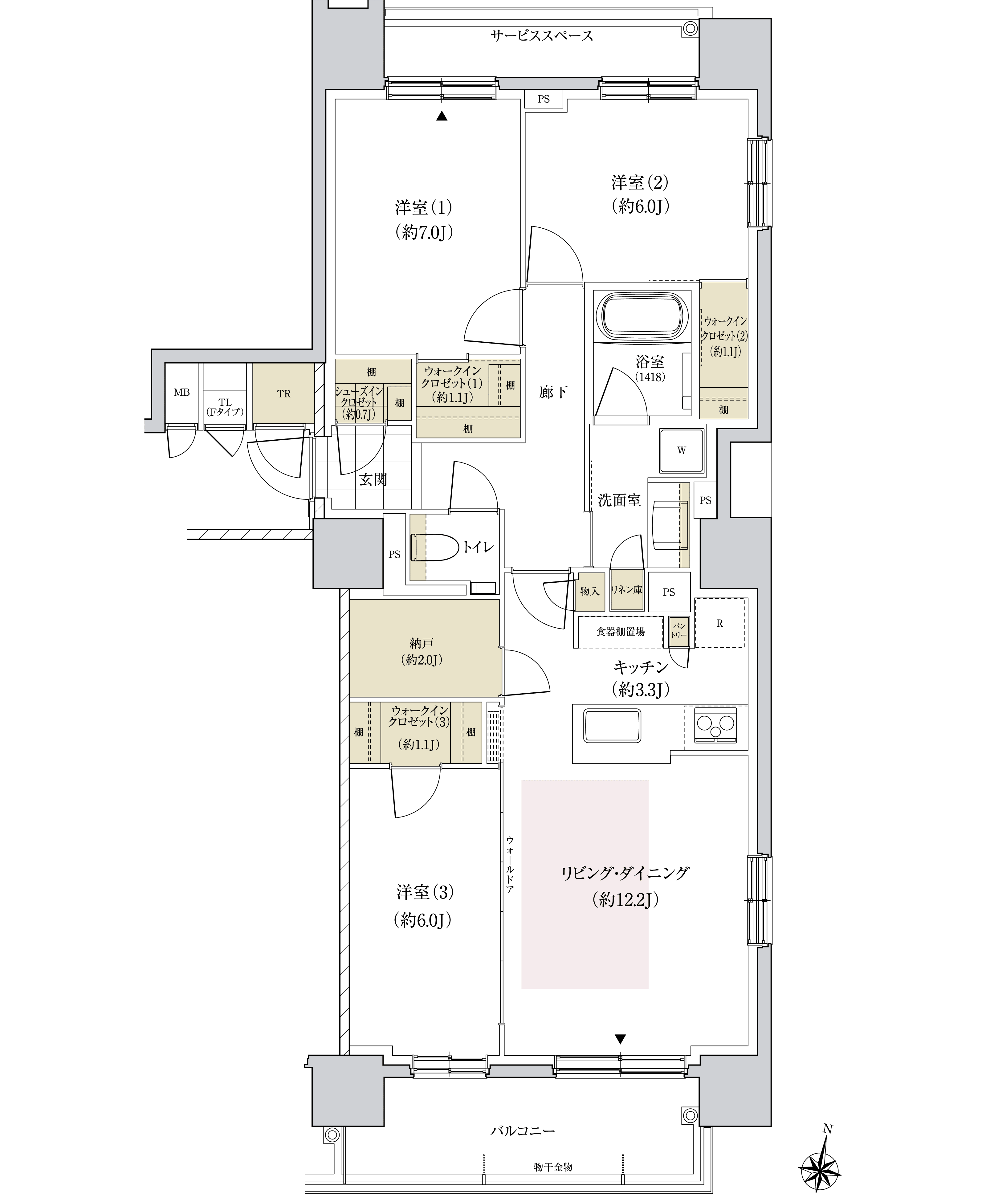 Ftype:3LDK/86.17㎡/南東角(北も含め三面窓)/7,280万円(2階)