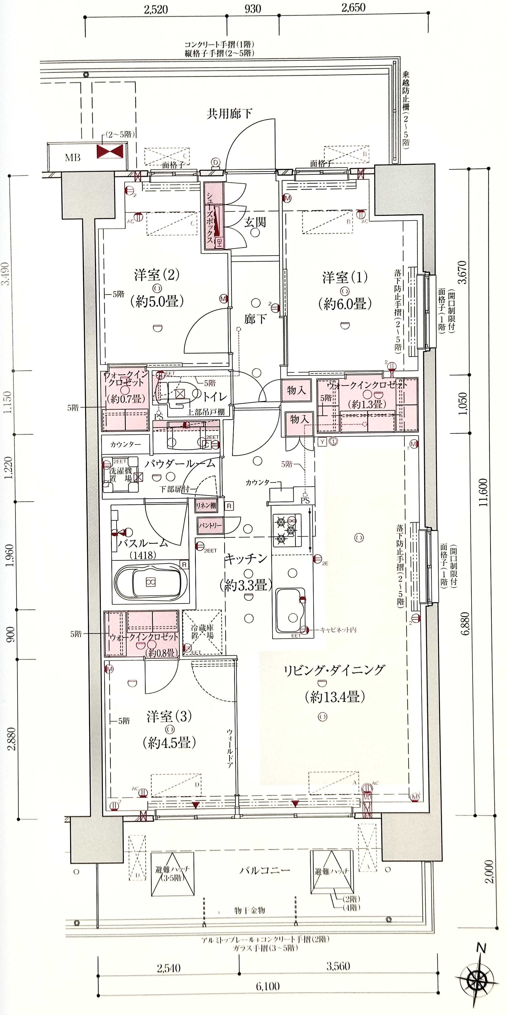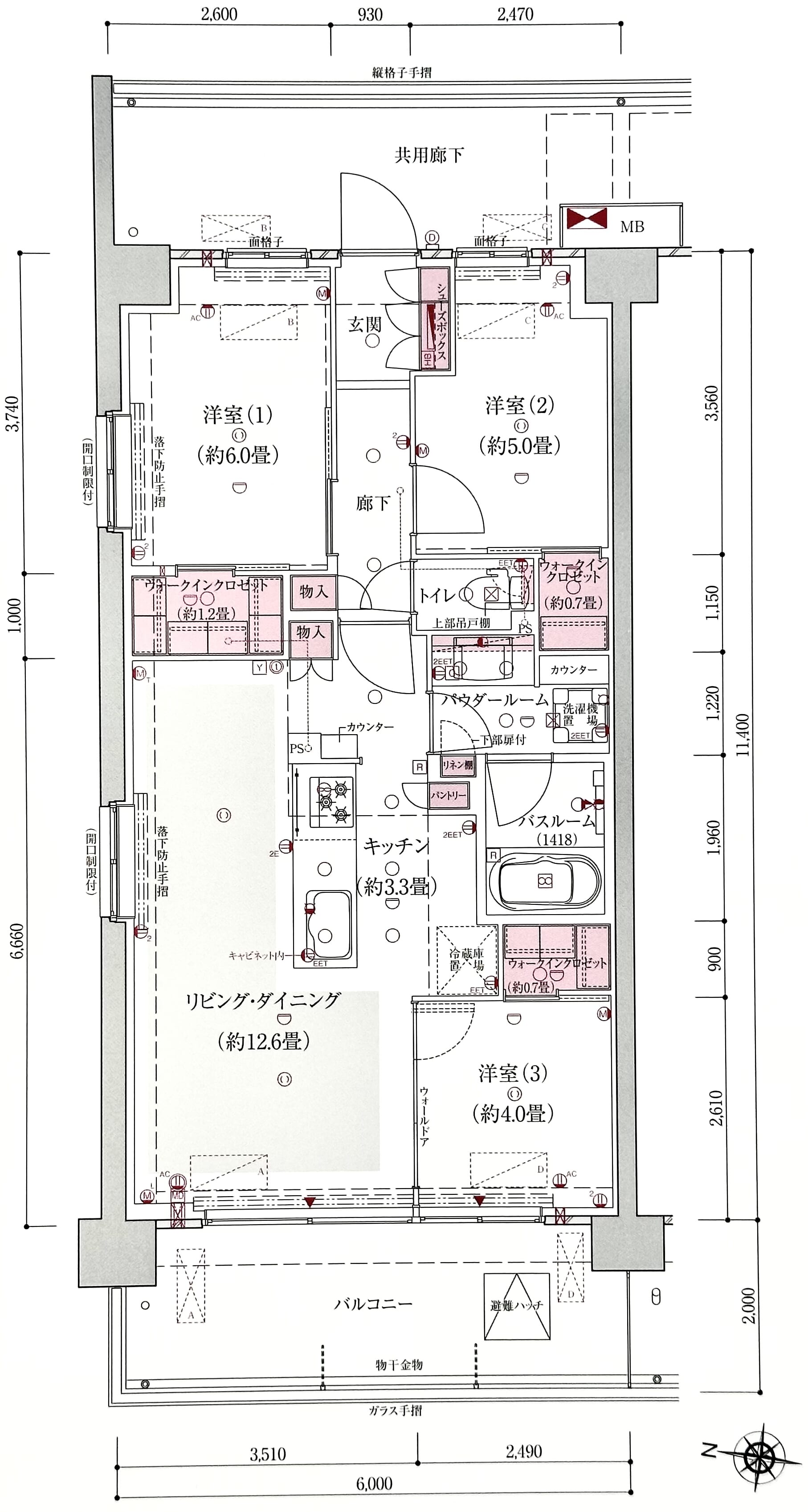 B6タイプ 68.44㎡ 3LDK 南向き中住戸