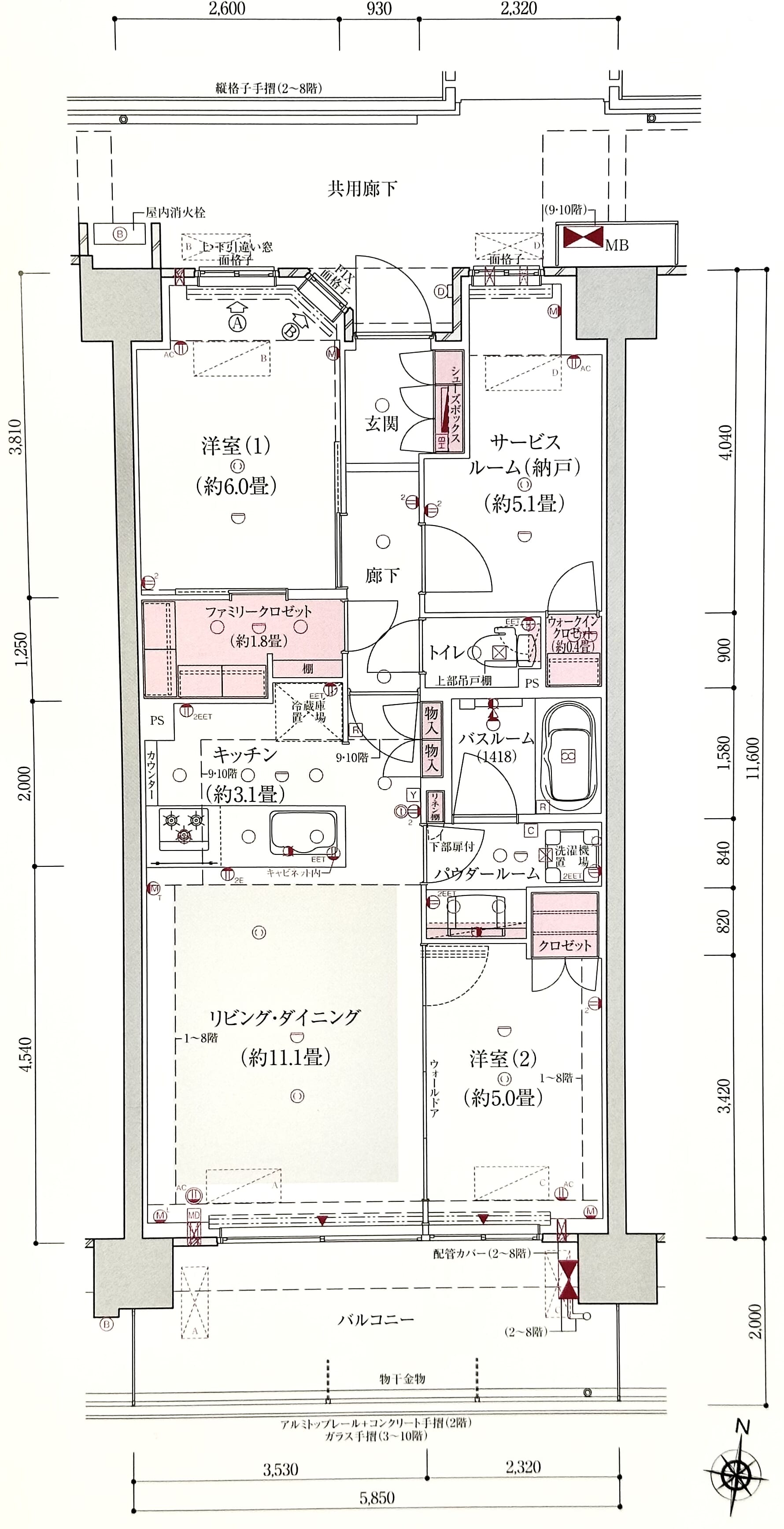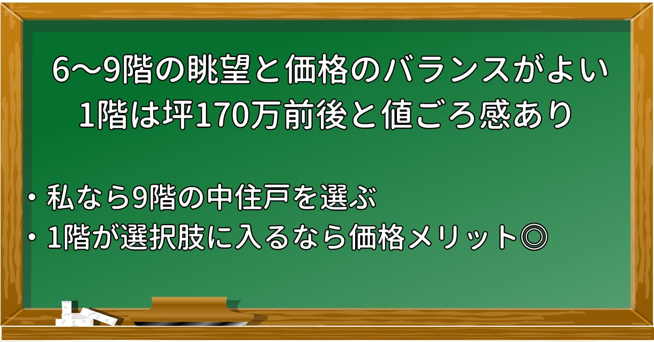 セブンイレブン前の間取りなら3階以上、セキ薬局前の間取りでは4階以上なら眺望は抜けます
