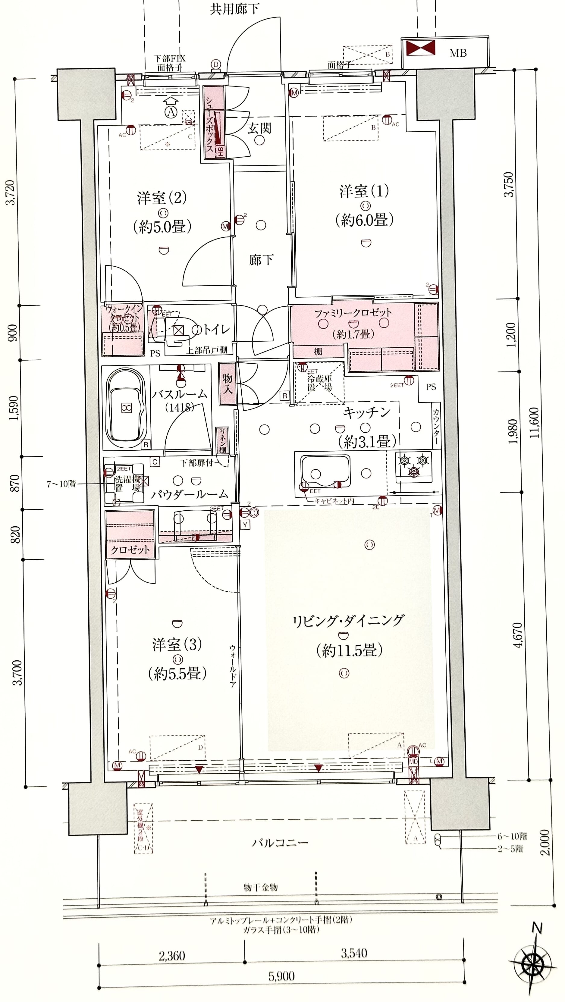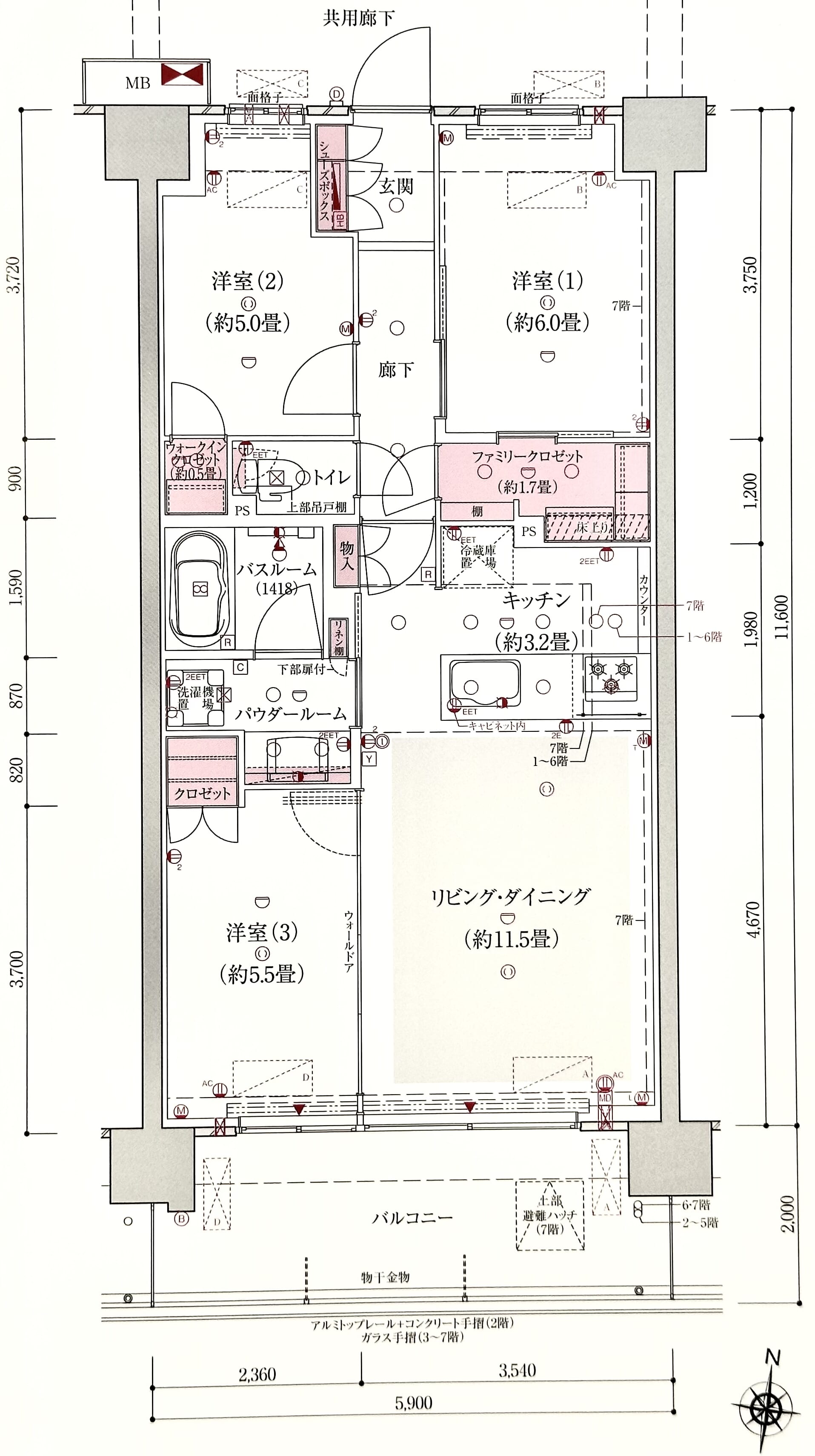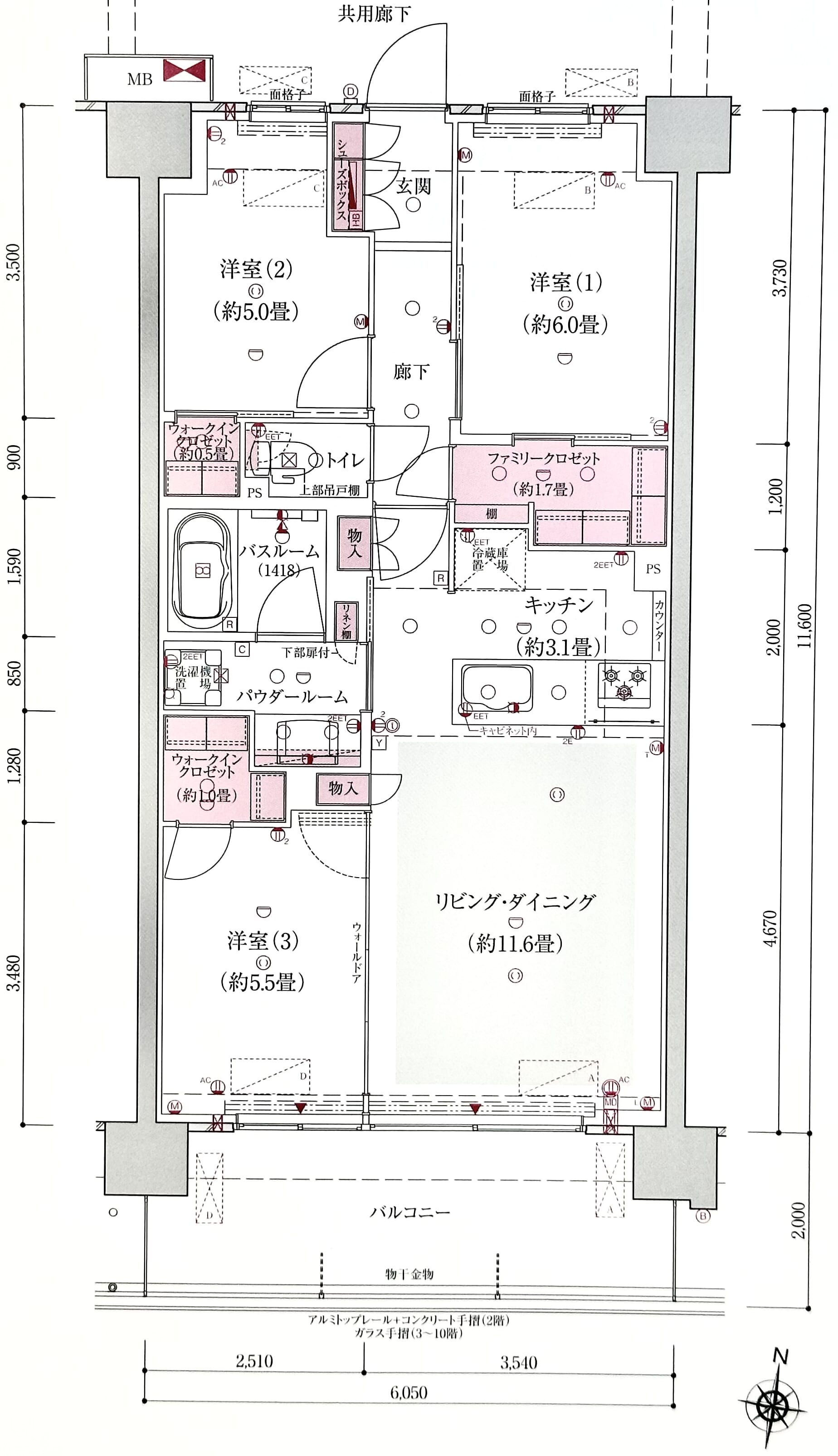 B11タイプ 68.44㎡ 3LDK 南向き中住戸