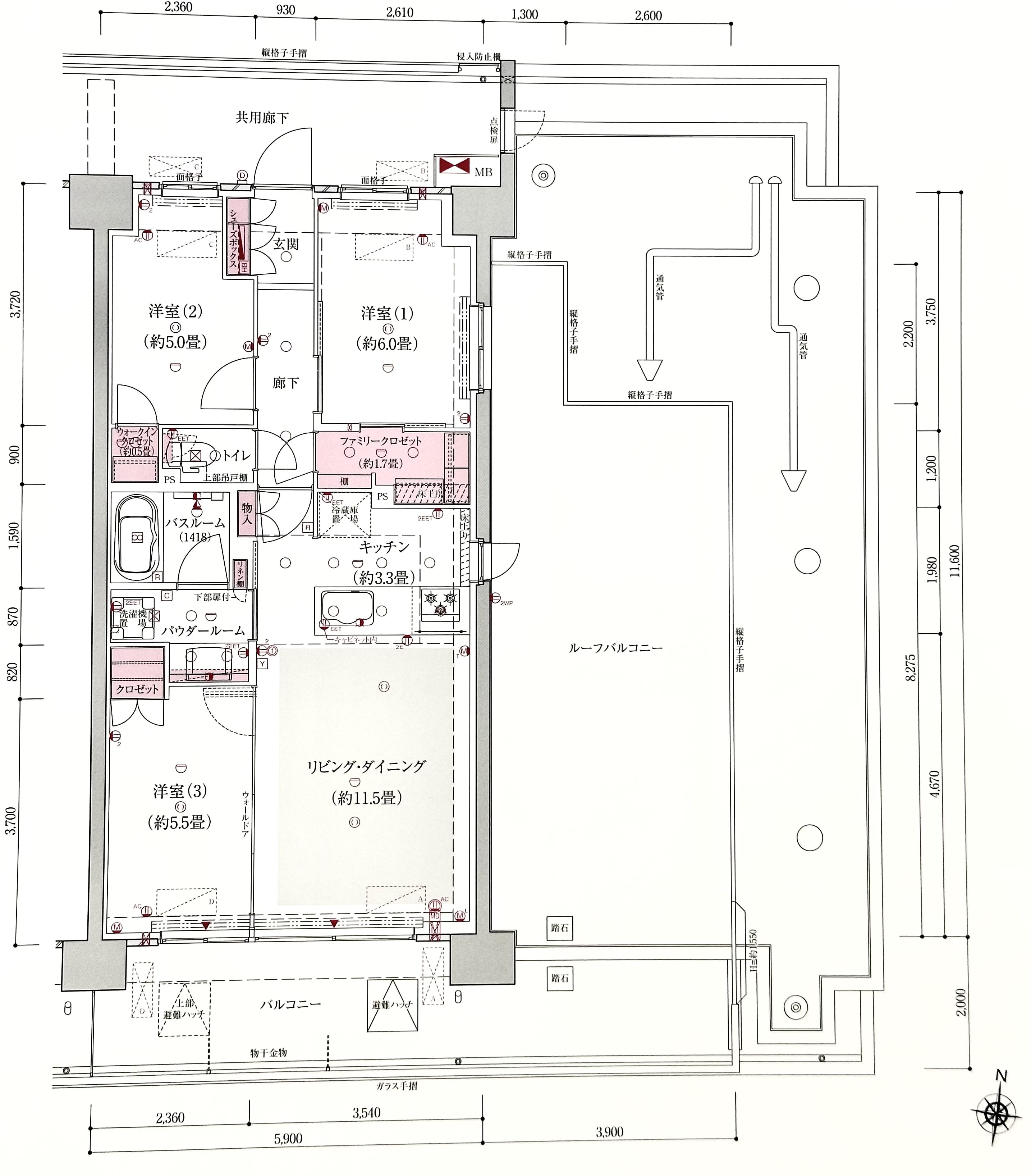 A2wタイプ 68.40㎡ 3LDK 西向き角住戸