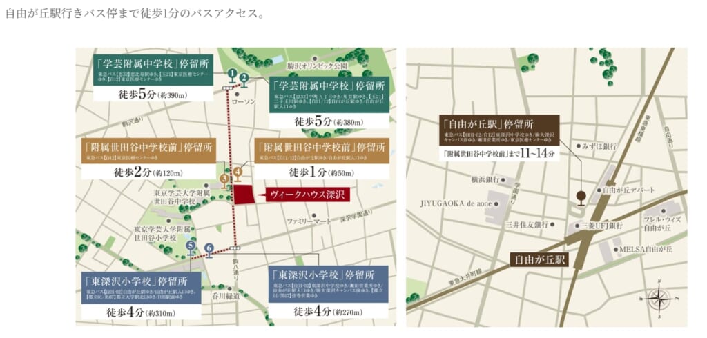 所在地 東京都世田谷区深沢2丁目45-1(地番) 交通 東急東横線「自由が丘」駅徒歩24分