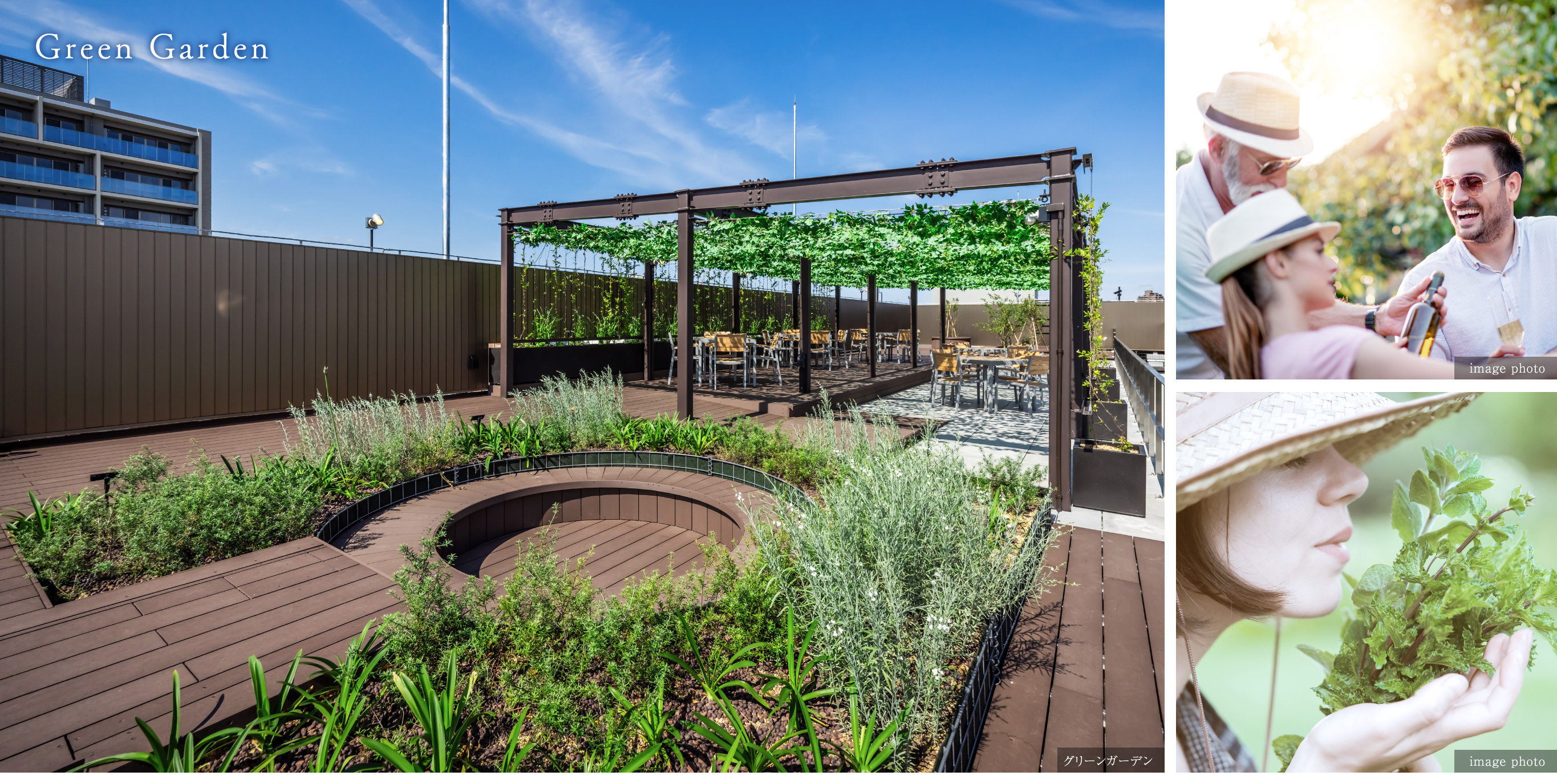 居住者専用の広大な2つのガーデン