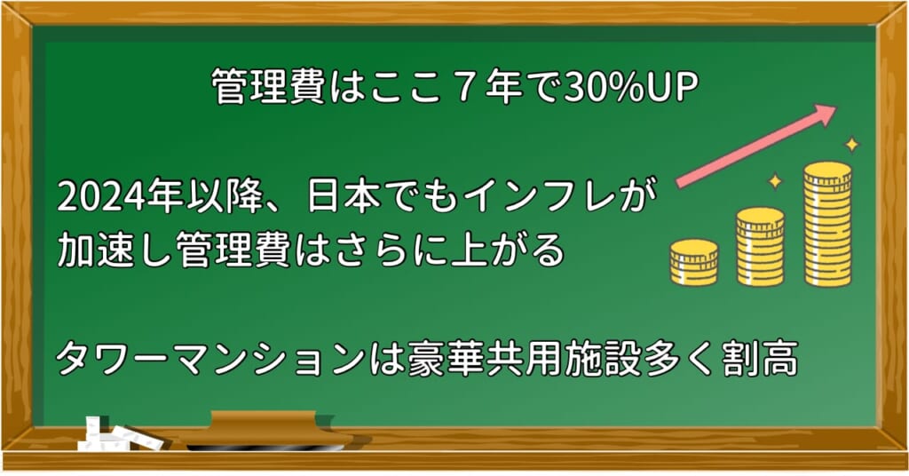 2017年から2023年の7年間で管理費の平均値が3割値上りしたとの記事があります