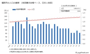 福岡市は人口が増加の一途を辿っており、市の予測では2040年に人口のピークを迎えると見込まれています。