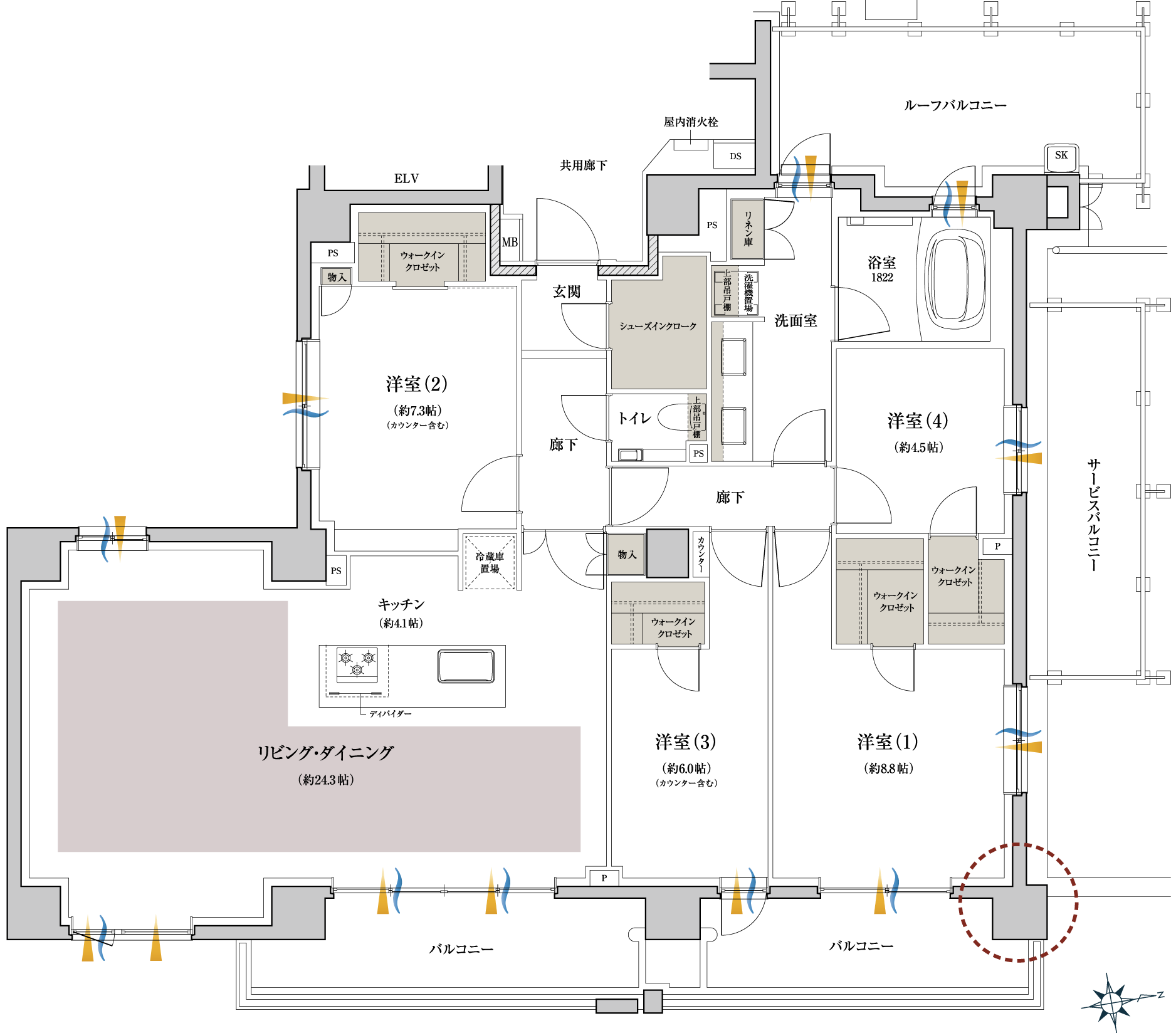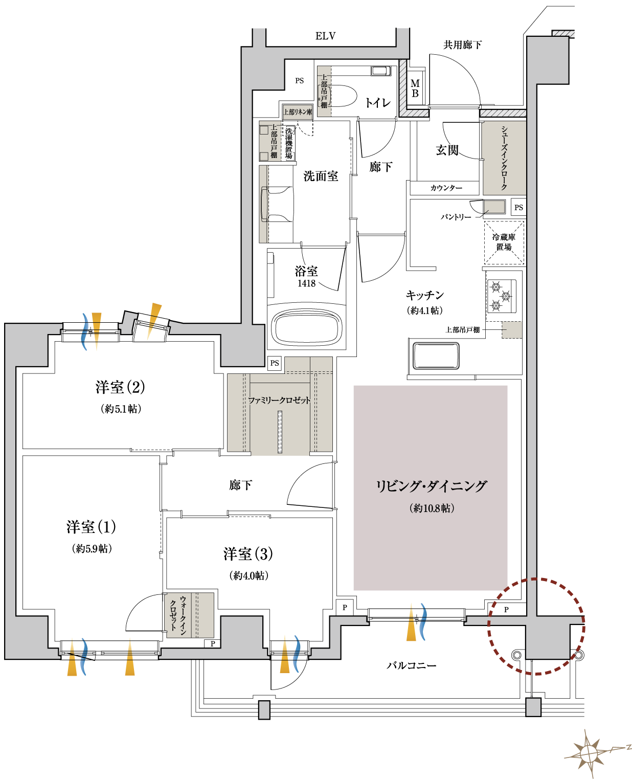 ▼Pタイプ 126.25㎡、4LDK、東向き