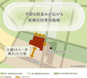 その2:「優れたロケーション」低層住居地域隣接、2面接道の角地