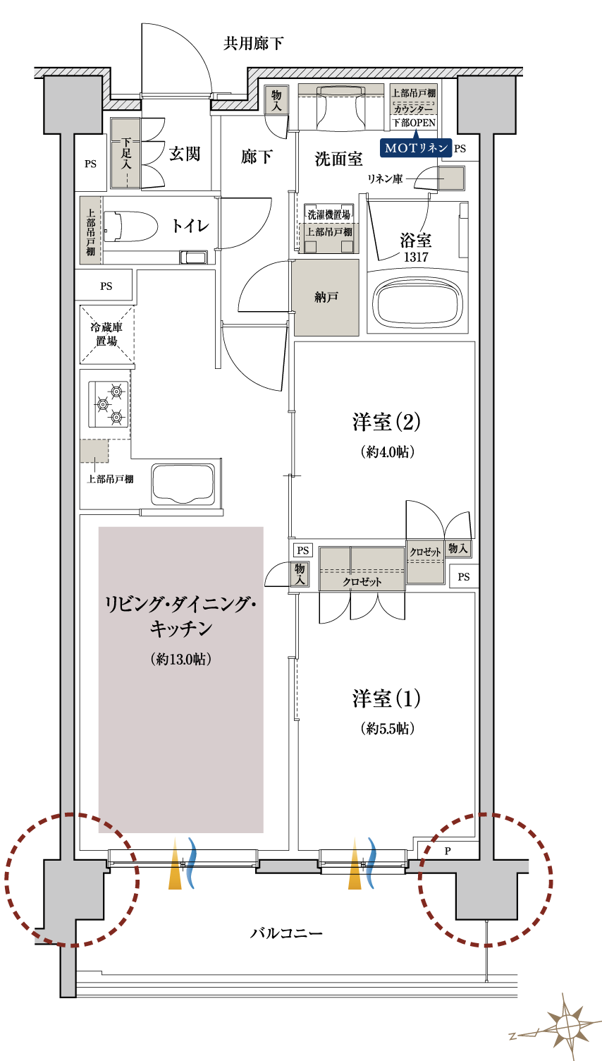 ▼Cタイプ 54.10㎡、2LDK、西向き
