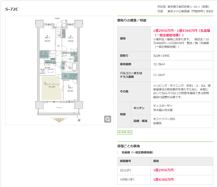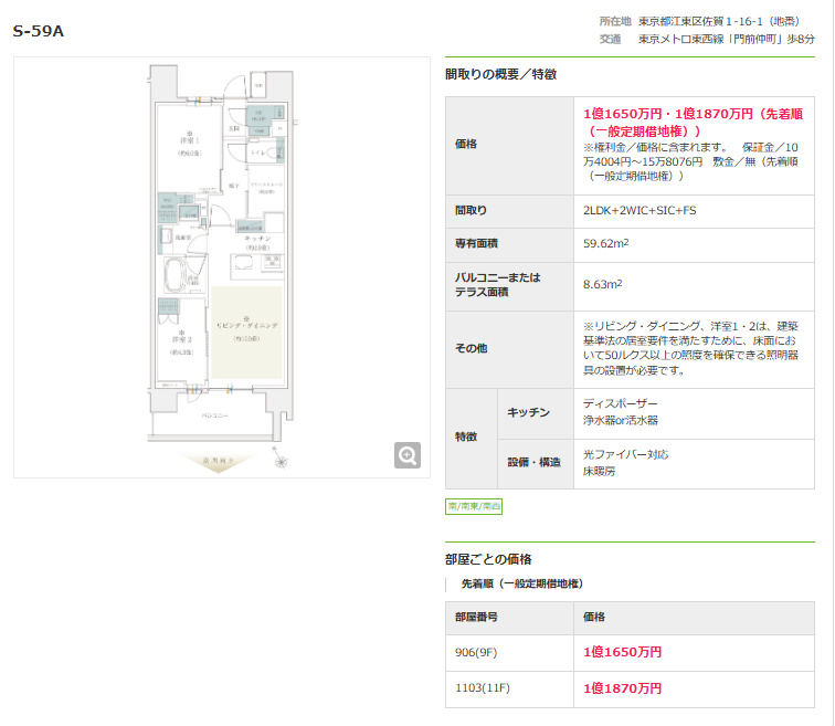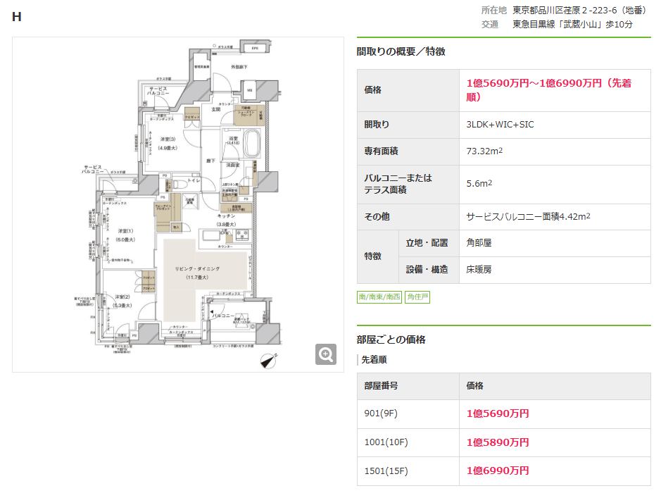 不動前駅物件としては駅距離や規模感的にも上位に来る出物と言うこと、地権者住戸も多くて、販売戸数も少ないことから、ゆっくり大事に販売しても良いのではという経営判断にも見えます。こんな販売方法が出来るのは、やはり不動前駅周辺で同時に販売開始した3つの物件の中でも、より駅に近く、より大きいというわかりやすい長所があるからこそのお値段での販売戦略を取れたんだと思います。