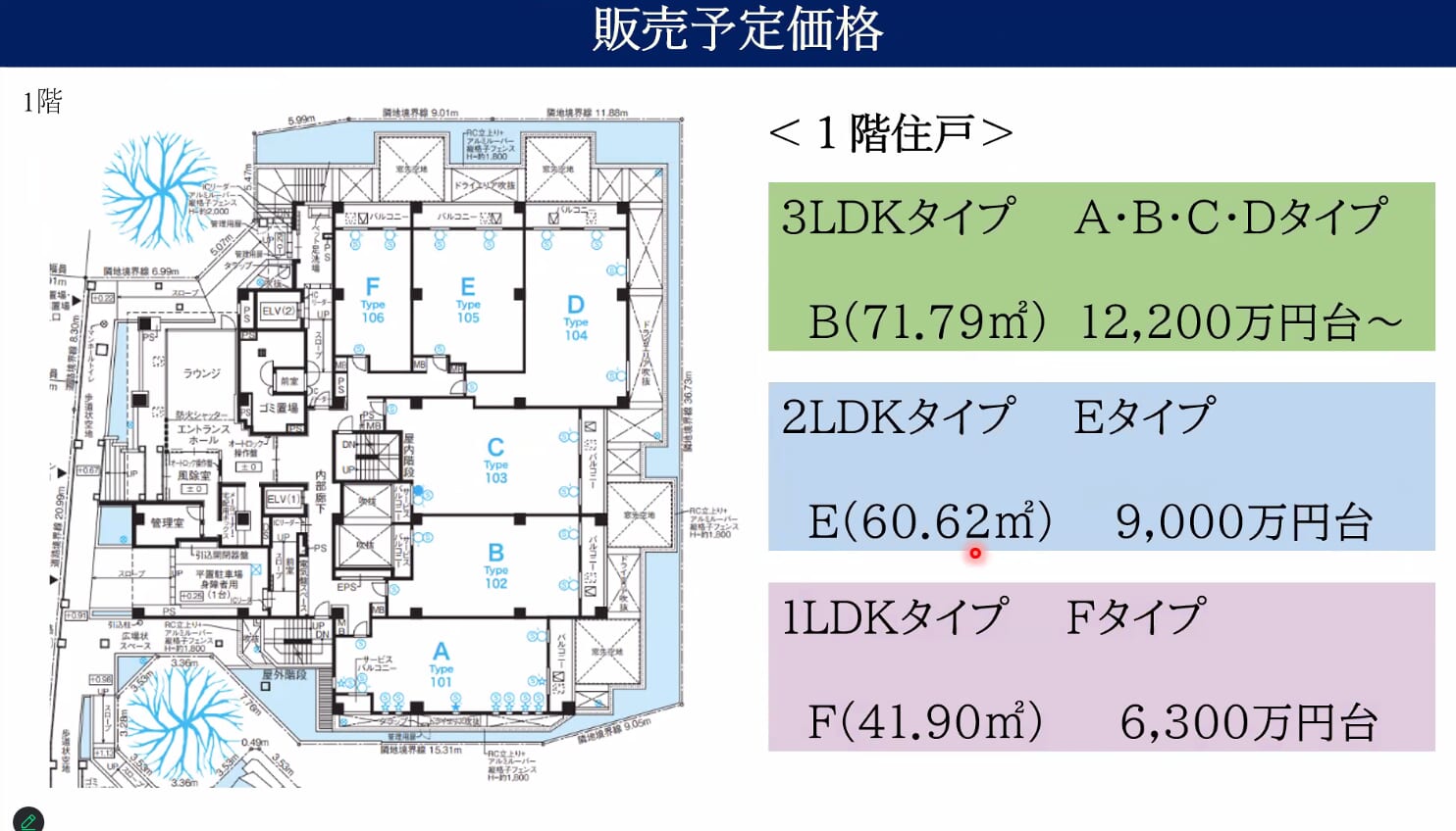4階:1億5000万円台(坪815万円~)、13階:1億6000万円台(坪870万円~)
