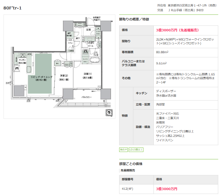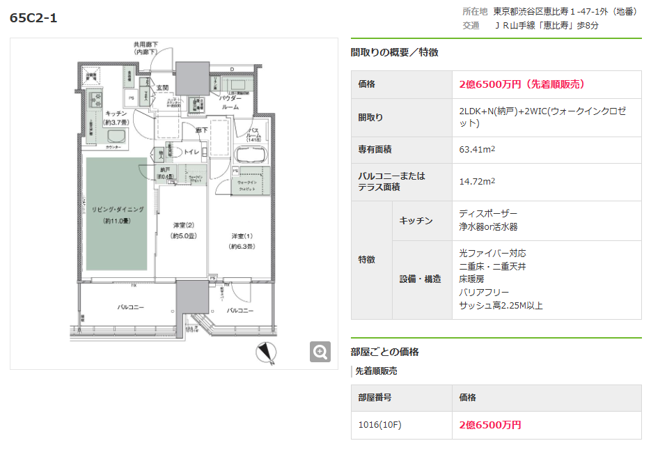 しっかりとお高いグランドヒルズ恵比寿(坪1090万~1630万円台)