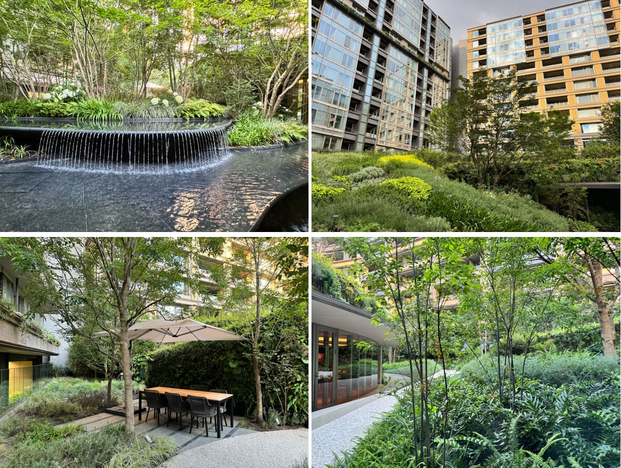 グランドエントランスからそのままさらに進んでいくと、共用スペースであるセンターヒルに出ます。センターヒルには、ガーデン、ワークスペース、フィットネス、ミニストア(ナチュラルローソン)、カフェラウンジなどがあります。