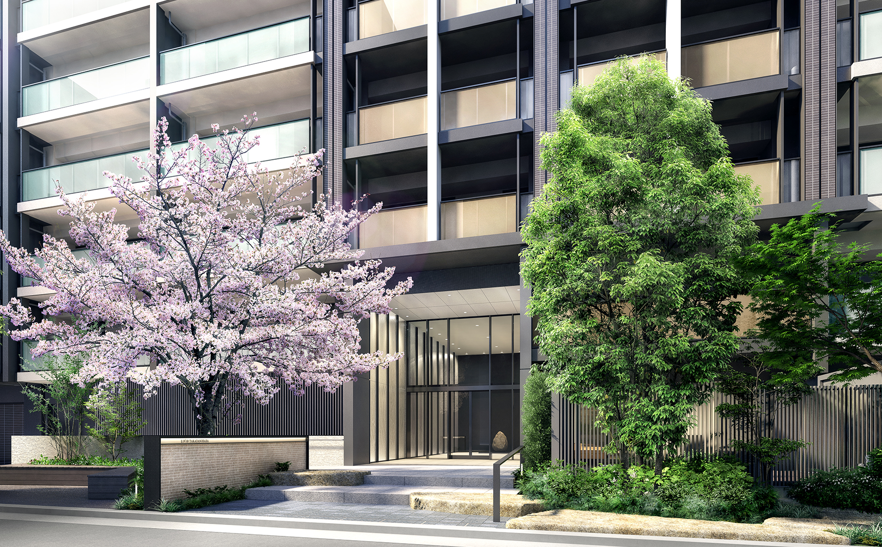 現地の正面の道は、今回の開発にあたり、道路を広くしているそうで、通りやすい道でした、そんな広めの一方通行の道に対して、緑がさらに追加されることで、道の印象が良くなるのは良いですね、分譲マンションが建つことで周辺環境が良くなるのは嬉しいことです