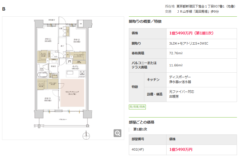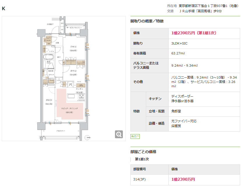 かつてブログに挙げたパークシティ高田馬場の価格帯を見てしまうと、落胆を隠せないですが、現状ではパークシティ高田馬場のほうがしっかりとお値段高いですし、選べる人を選んでいる価格になっています。