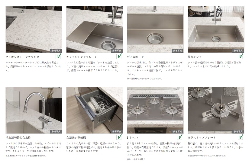 浄水器やコンロのグレード、カウンター付き食器棚が標準ということで文句言い難い内容です