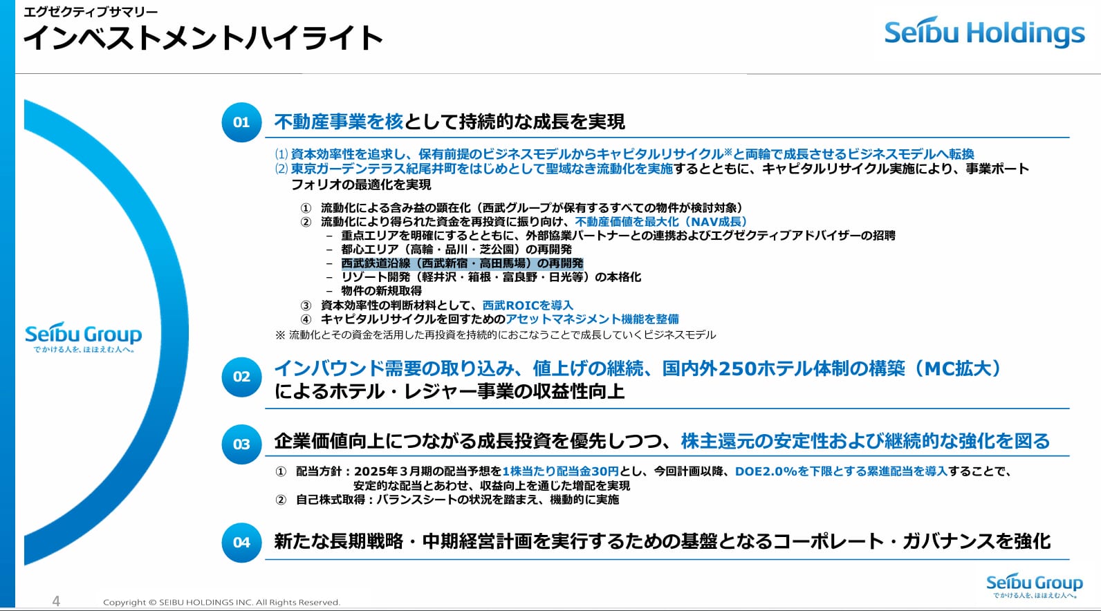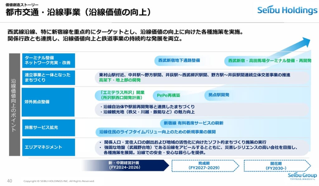 再開発は、期待値の高さが大事ですので、このようにIR資料に何度も高田馬場の地名が載ることが、沿線の価値を向上させる下支えになると思います