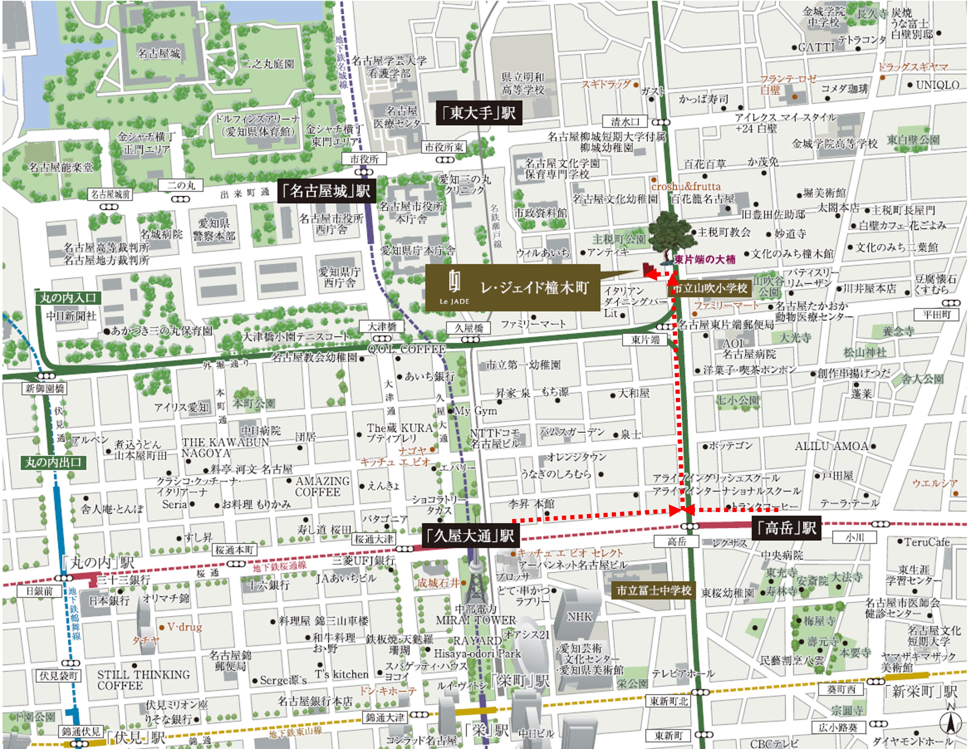 | 交通 | 地下鉄桜通線「高岳」駅 徒歩9分 地下鉄桜通線・名城線「久屋大通」駅 徒歩13分 |